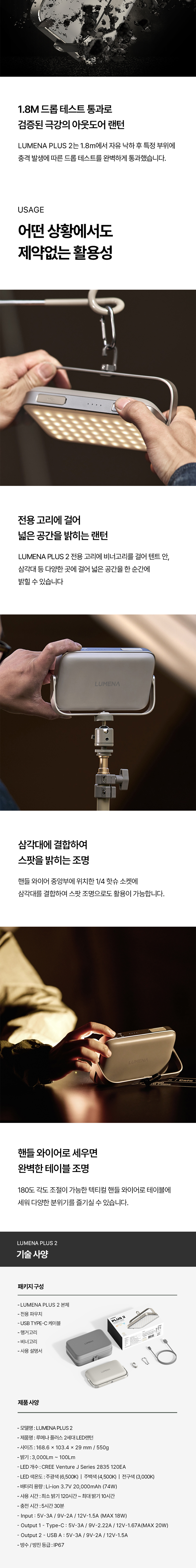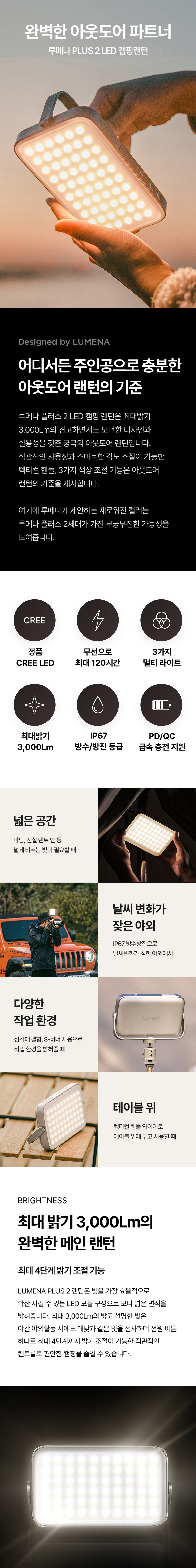 루메나 플러스 2 LED 캠핑 랜턴 카밍 베이지