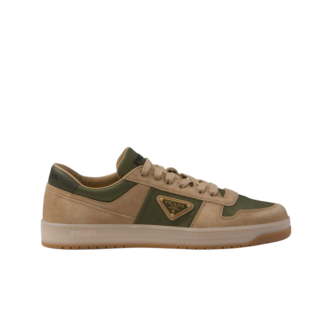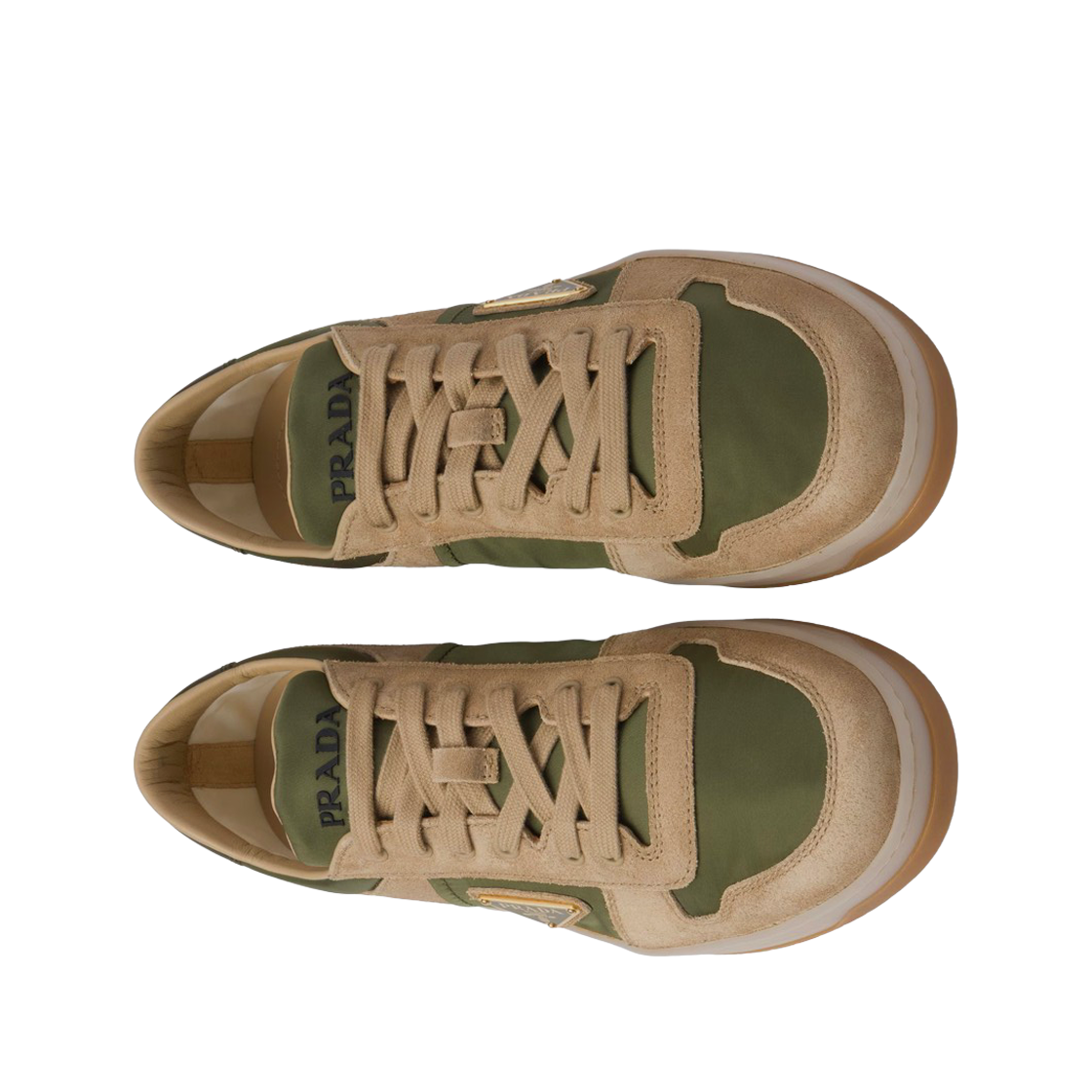 Prada Downtown Delavé Suede Re-Nylon Sneakers Ecru Military