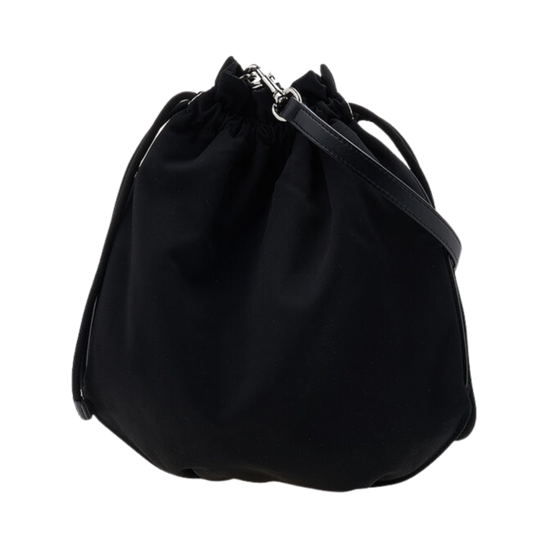 비비안 웨스트우드 로고 플라크 드로우스트링 숄더백 블랙