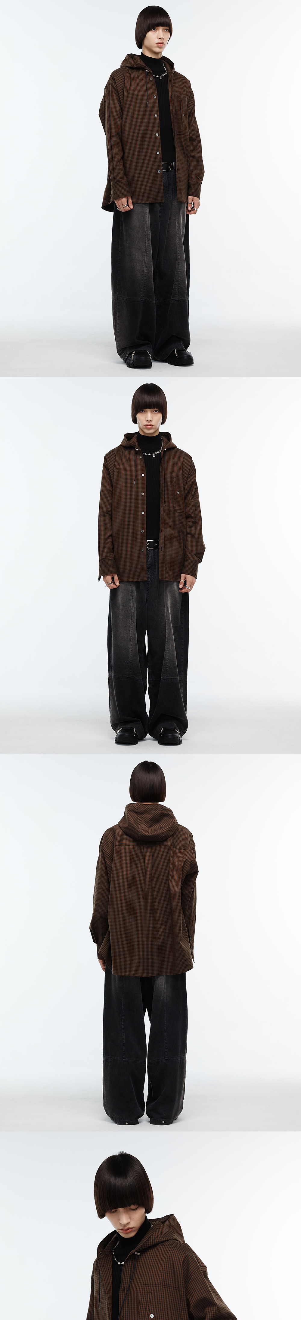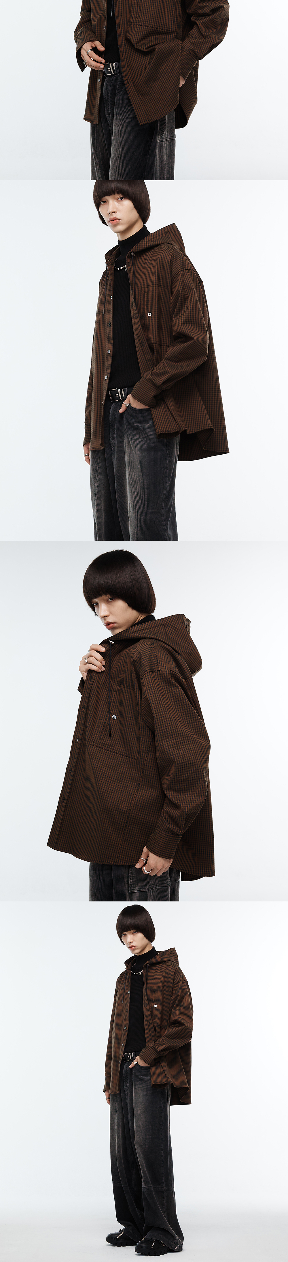 Haleine Incision Check Hooded Shirts Brwon (VT311)