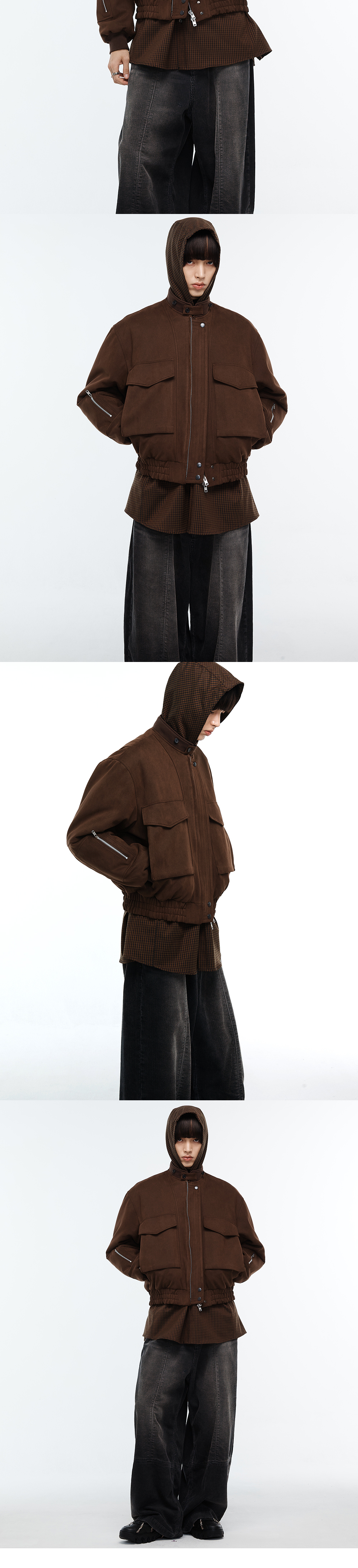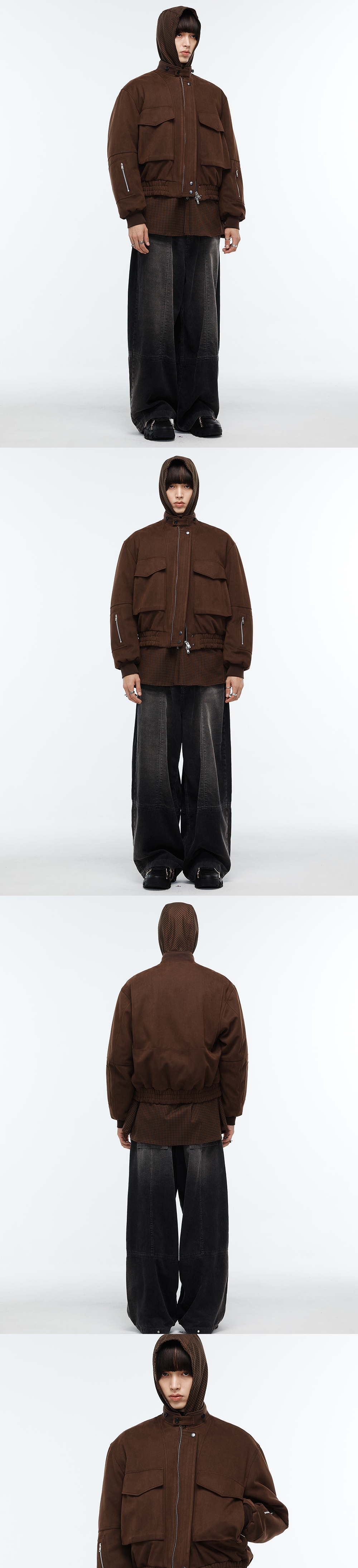 Haleine 3D Faux Suede Bomber Blouson Brown (VJ308)