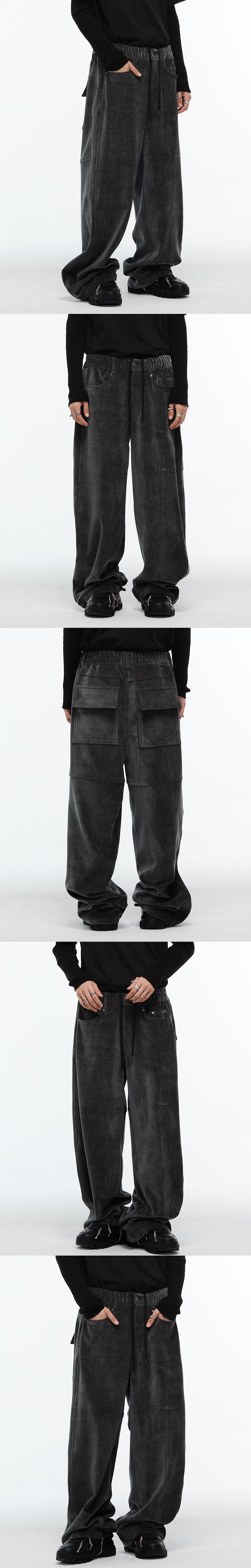 *실제 색상은 제품 상세이미지와 흡사합니다.* 입체적인 절개 라인이 돋보이는 와이드 팬츠입니다. 부드러운 벨루어와 사선 방향의 코듀로이가 믹스된 느낌이 매력적인 소재가 사용되었으며, 릴렉스한 실루엣과 데님팬츠에서 차용된 디테일들의 조화가 매력적인 제품입니다. - DETAIL - 신축성있는 허리 밴딩 및 드로우스트링 데님에서 차용된 5-포켓 디자인 및 리벳 디테일 플랩 형태의 백포켓 옆면 수직 절개 뒷면 수평 절개 -model- 184cm / 가슴둘레 83cm / 허리둘레 70cm / 엉덩이둘레 90cm - 2사이즈 착용 * 모델의 경우 총장이 5cm 더 길게 제작된 제품을 착용 *