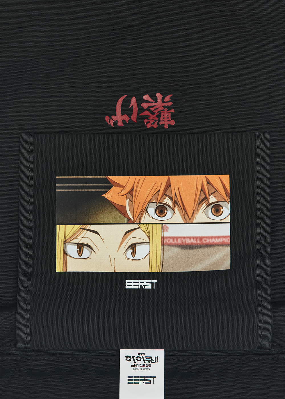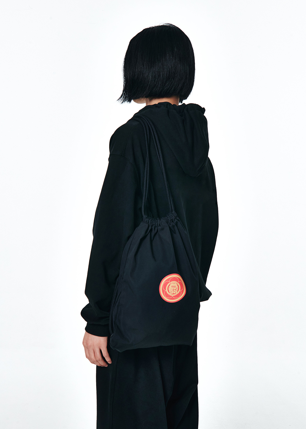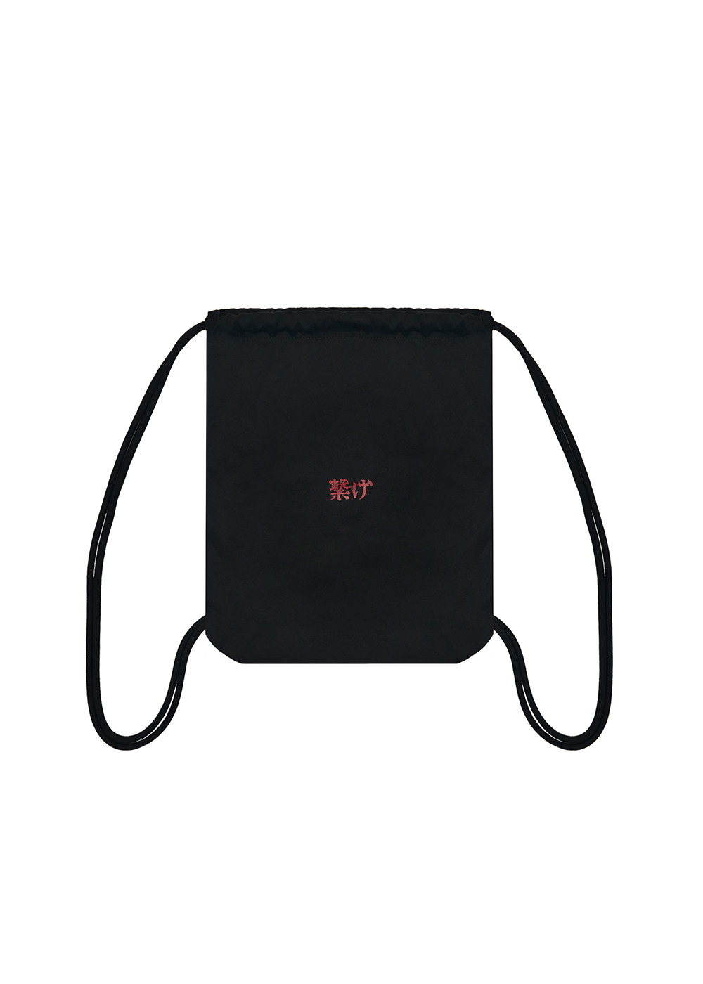 · 스트링 백팩 · 내부에서 스트링 길이 조절 가능 · 내부 지퍼 포켓 배치 · 전면 네코마고교 엠블럼 프린팅 · 후면 네코마고교 응원문구 프린팅