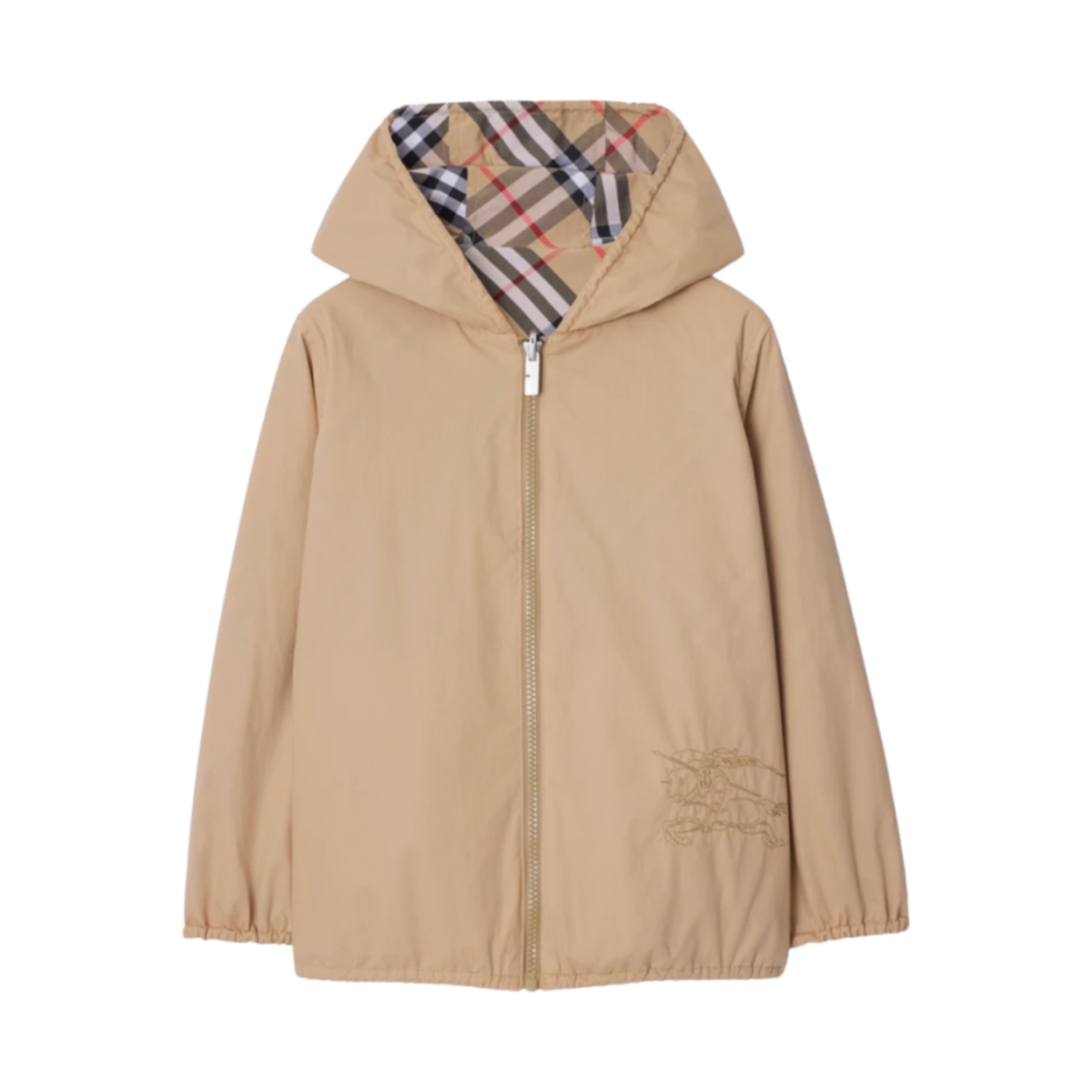 (Kids) Burberry Reversible Check Cotton Blend Jacket Sand