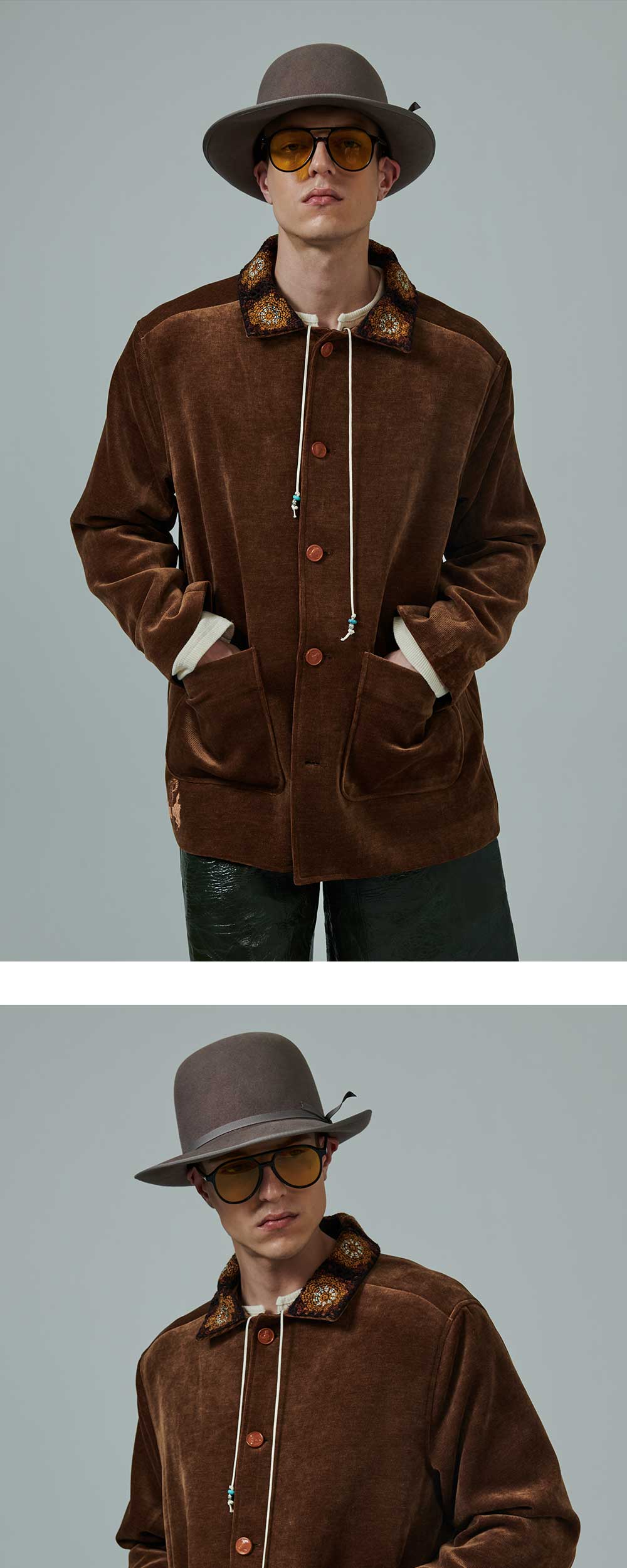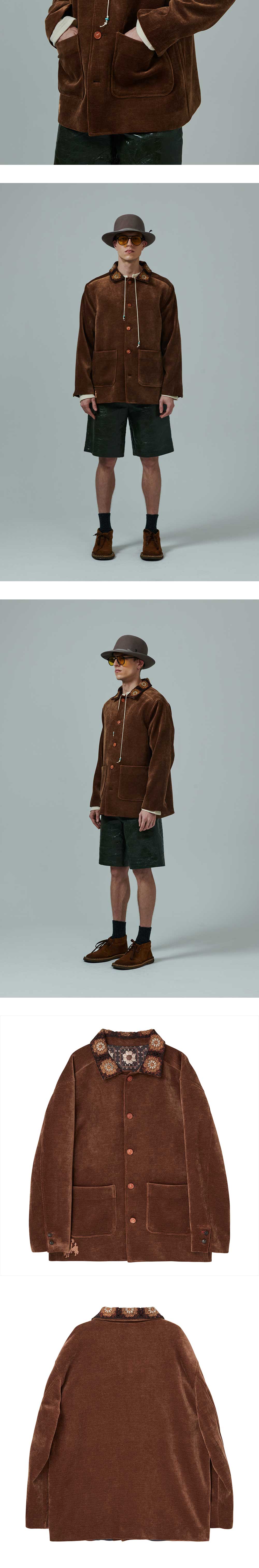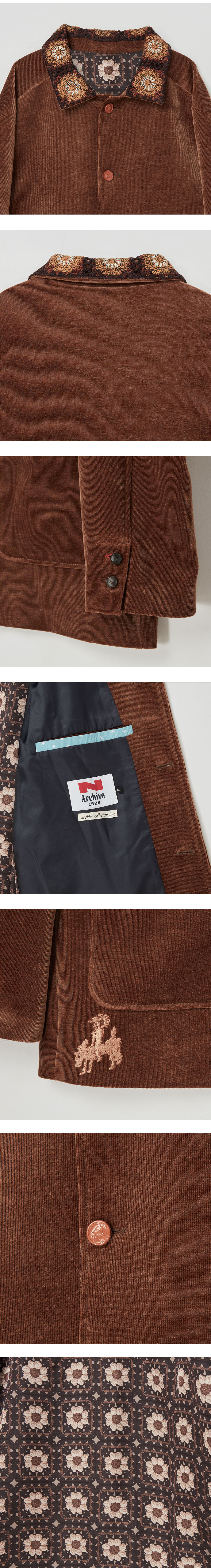 ㆍ 아카이브 라인의 셔닐 혼방 소재로 제작된 빈티지 아트 피스 자켓 ㆍ90년대 방식으로 제작된 테일러링을 통해 오리지널리티를 복각 ㆍ송충이를 의미하는 셔닐 단어 뜻처럼 대단히 부드러운 외관으로 완성되며 착용감이 우수 ㆍ가죽 위에 특수 공법으로 표현된 HORSE BUTTON(MADE IN ITALY) ㆍ빈티지 크로셰 원단으로 포인트를 더한 카라와 포켓 하단부 자수 디테일 ㆍ빈티지 원단으로 포인트를 더한 안주머니 디테일 ㆍ소매 리얼 버튼 ㆍ남녀공용 착용