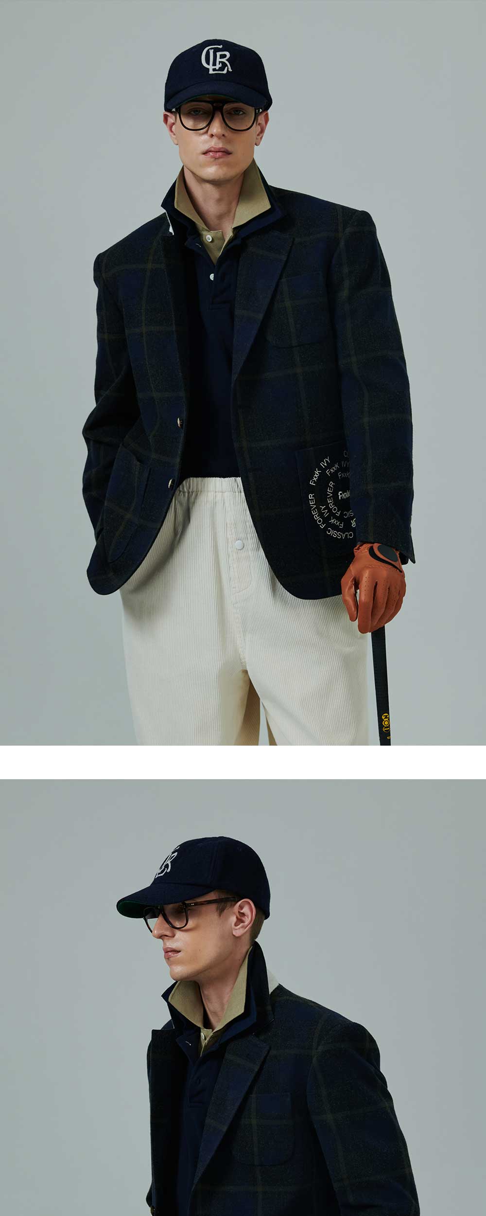 ㆍ컬렉션 라인의 울 혼방 소재로 제작된 체크 자켓 ㆍ90년대 방식으로 제작된 테일러링을 통해 오리지널리티를 복각 ㆍ가공된 울 혼방 소재를 통해 묵직하고 견고한 자켓을 완성 ㆍ아웃포켓에 핸드메이드 방식으로 제작된 공방의 비즈공예와 자수로 포인트 ㆍ카라 뒤에 울 펠트 덧댐과 빈티지 금장 버튼 등 곳곳의 디테일 ㆍ소매 리얼 버튼 디테일 ㆍ남녀공용 착용