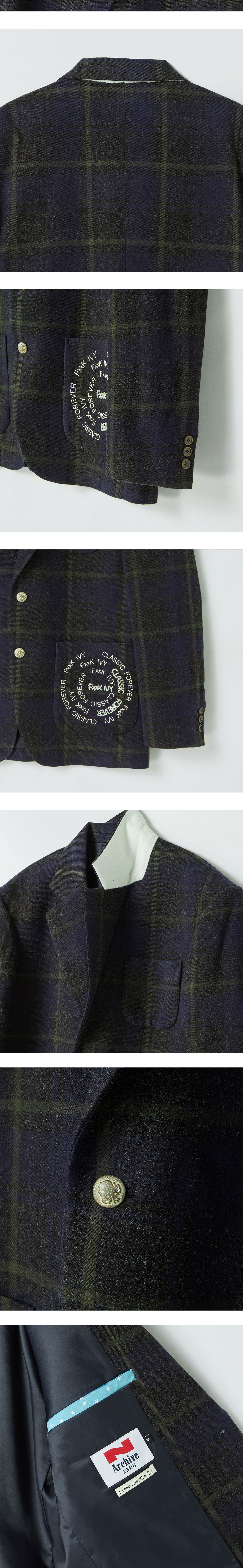 엔 아카이브 핸드메이드 디테일 FxxK IVY 울 스포츠 체크 자켓 그린