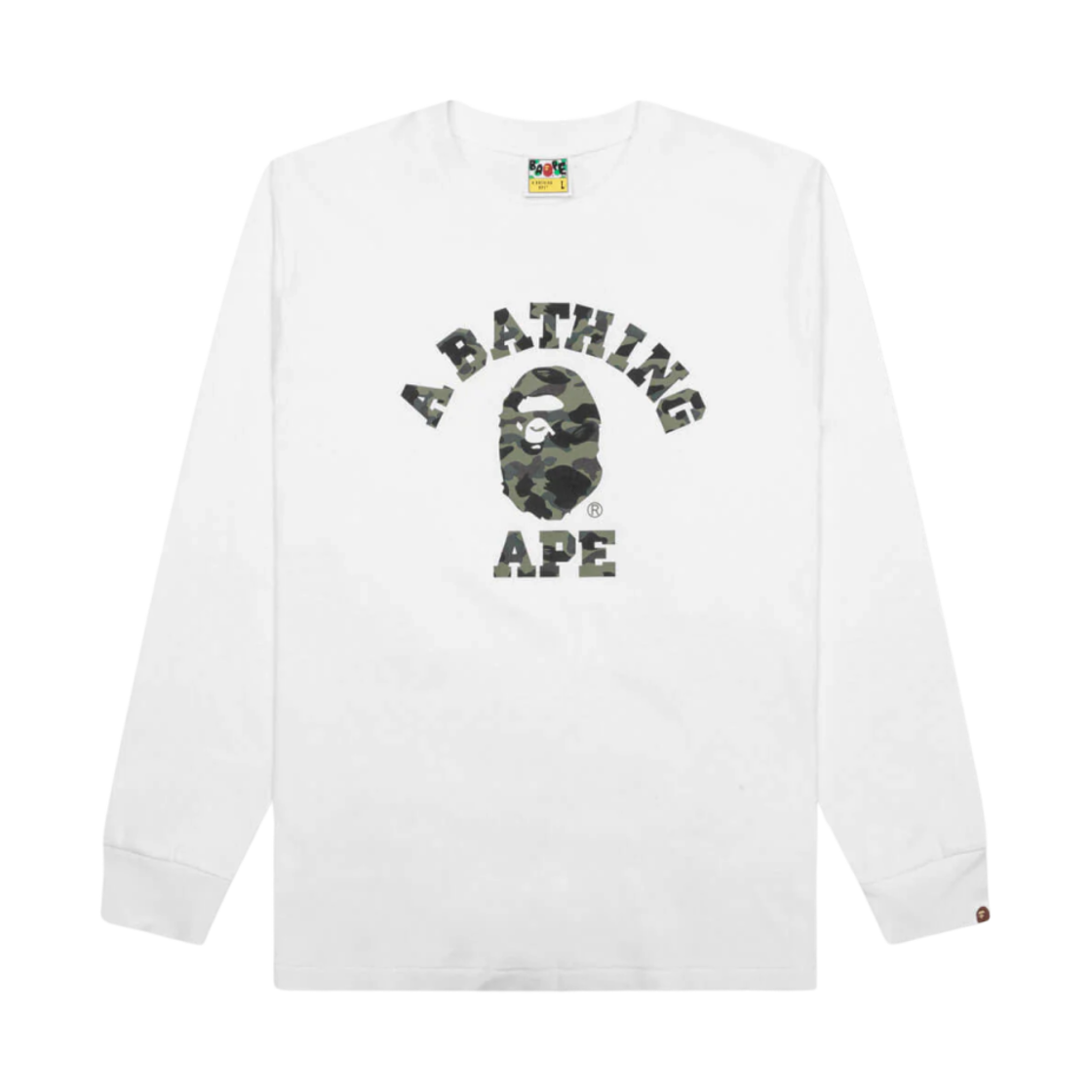 베이프 퍼스트 카모 컬리지 롱슬리브 티셔츠 화이트