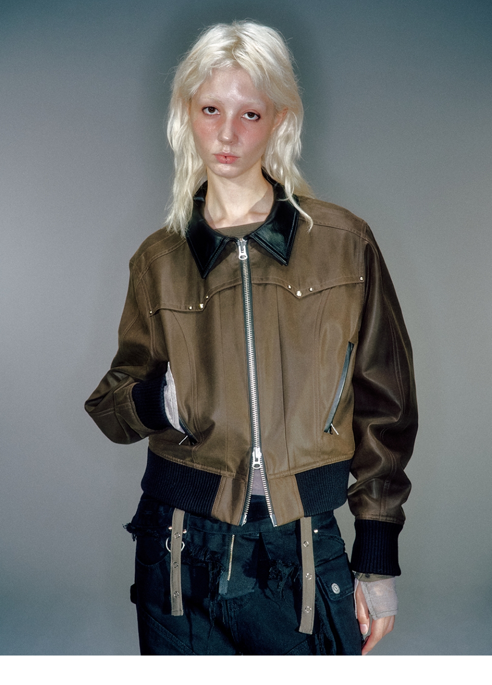 베이컨트 아카이브 벨라미 레더 칼라 자켓 브라운