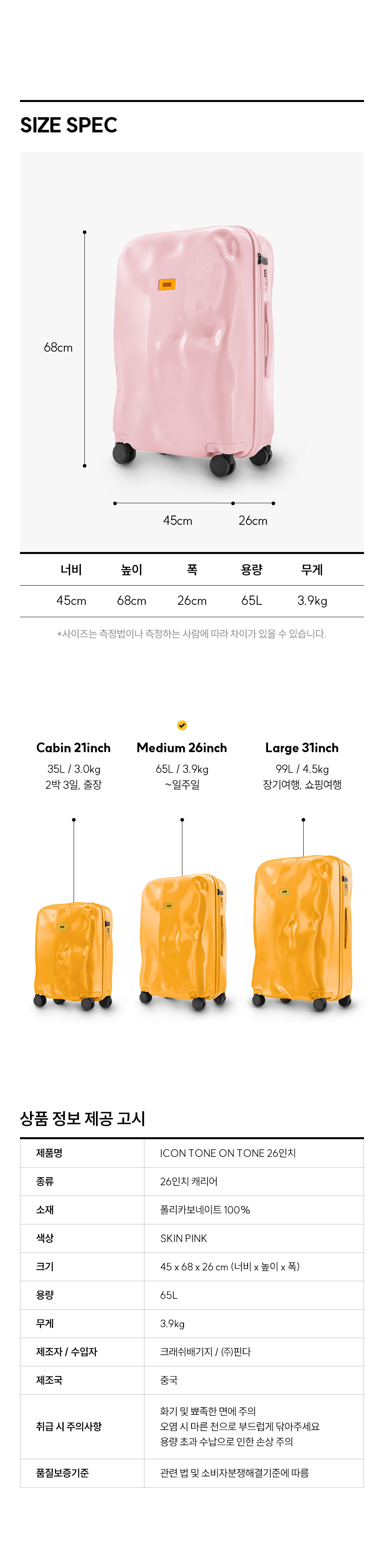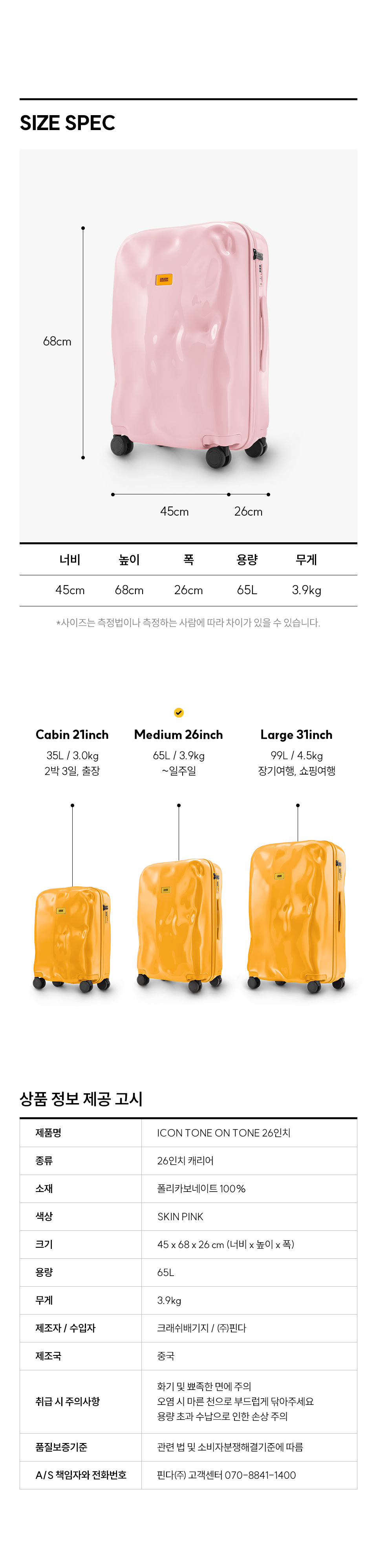 크래쉬배기지 아이콘 톤온톤 미디엄 26인치 캐리어 스킨 핑크