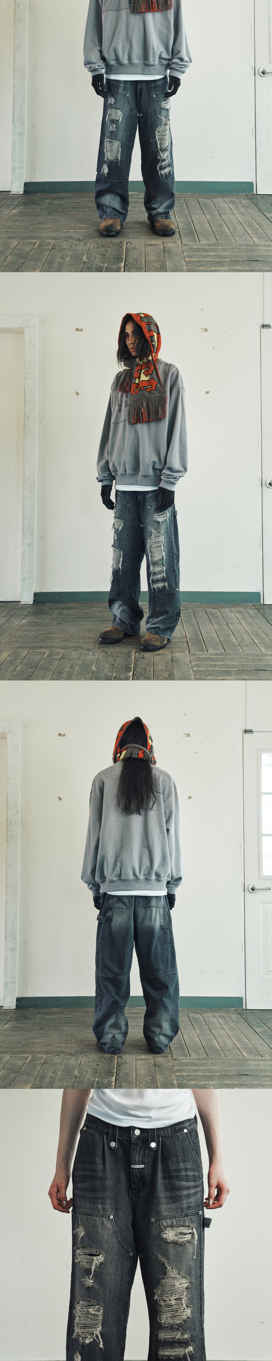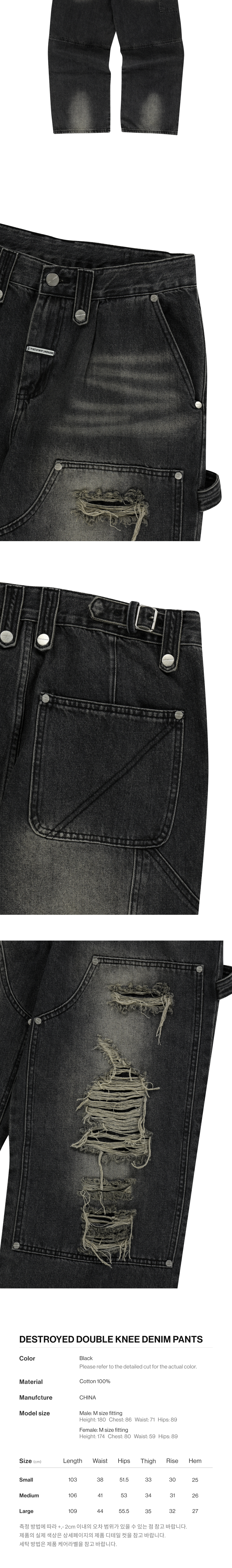더바이닐하우스 디스트로이드 더블 니 데님 팬츠 블랙
