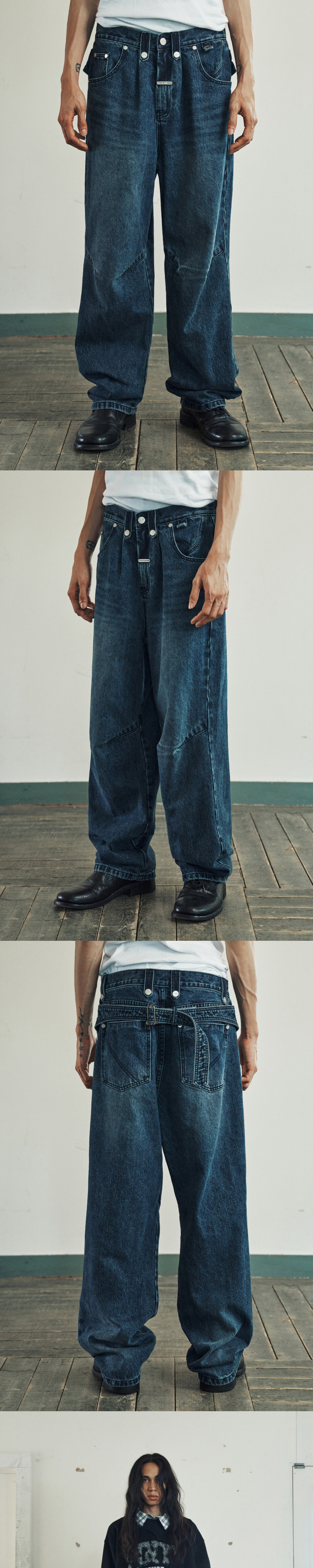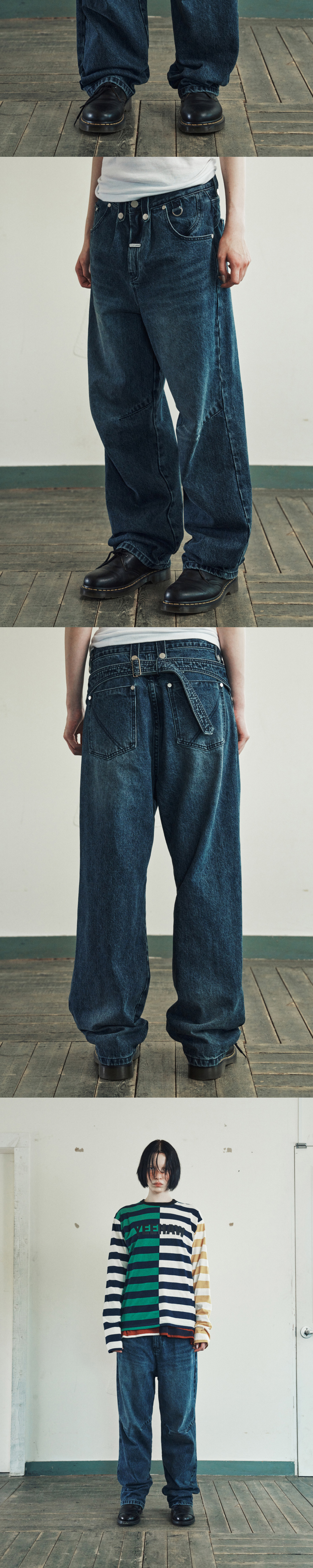 더바이닐하우스 커브드 데님 팬츠 블루