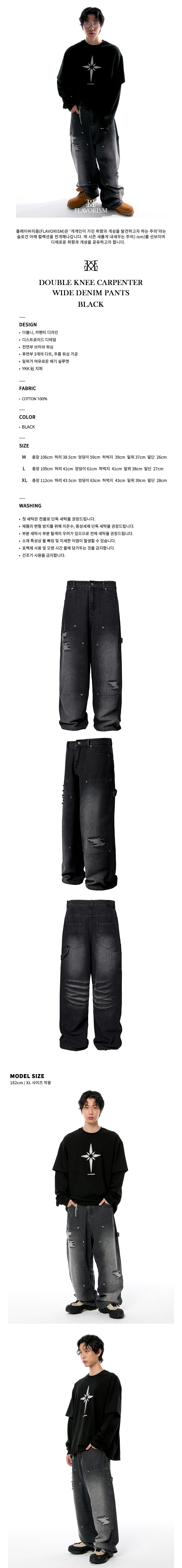 플레이버리즘 더블니 카펜터 와이드 데님 팬츠 블랙
