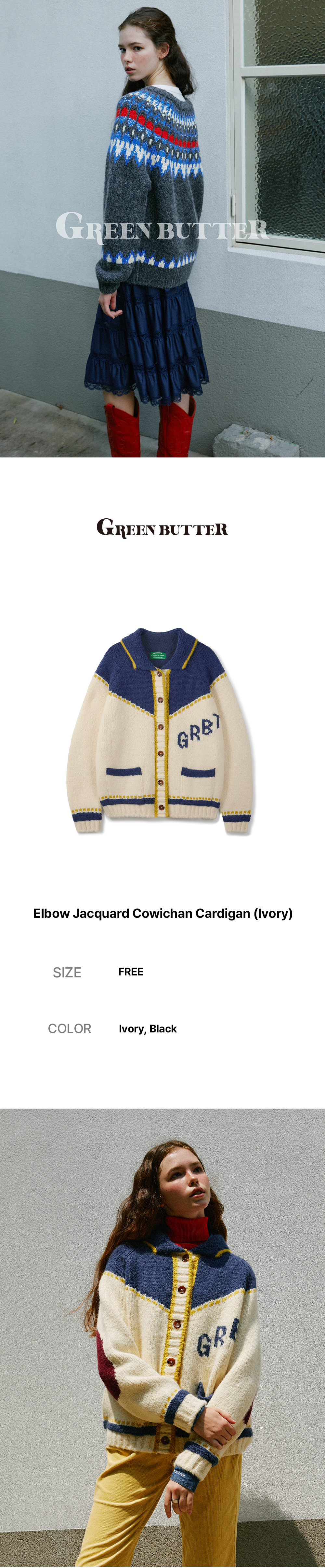 그린버터 엘보우 자카드 코위찬 가디건 아이보리