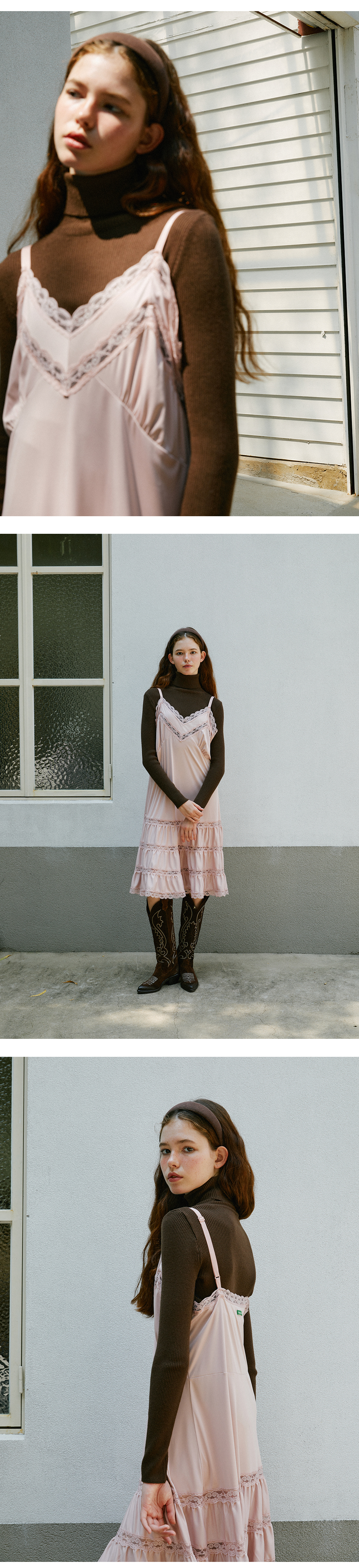 그린버터 실링 레이스 슬립 드레스 핑크