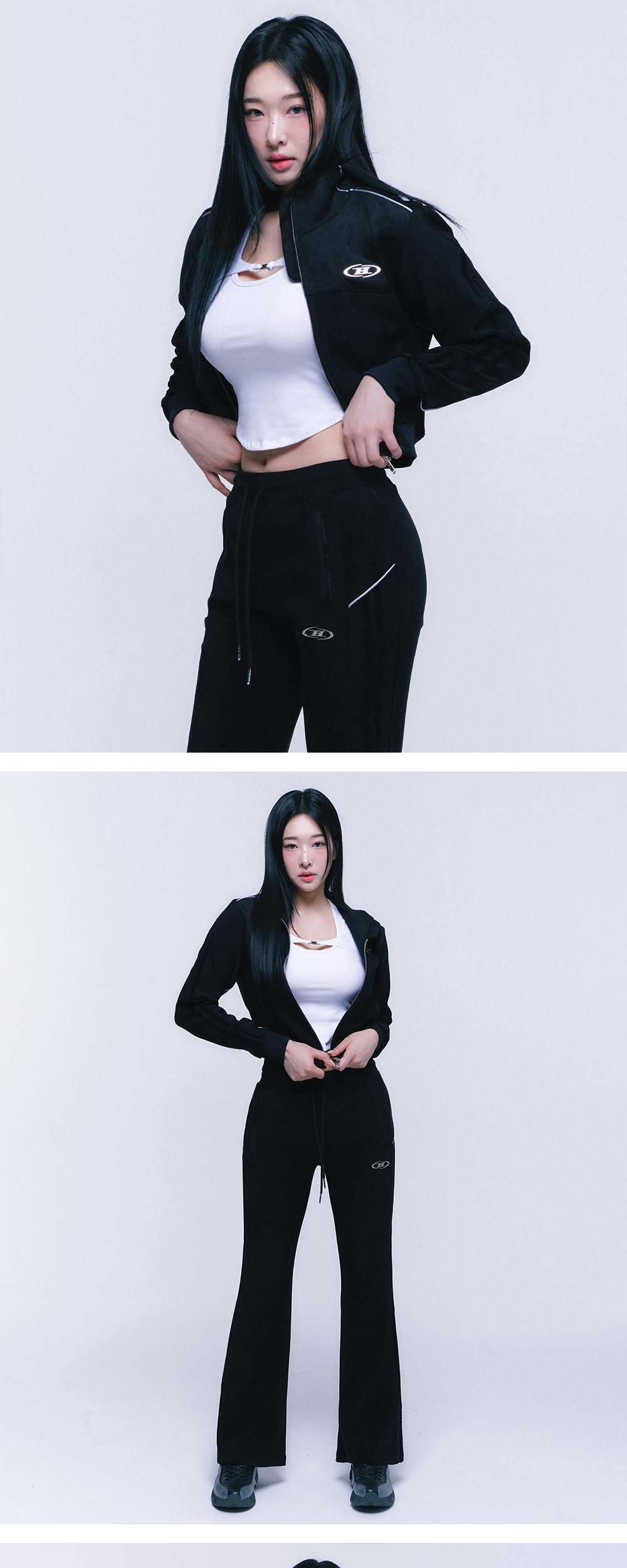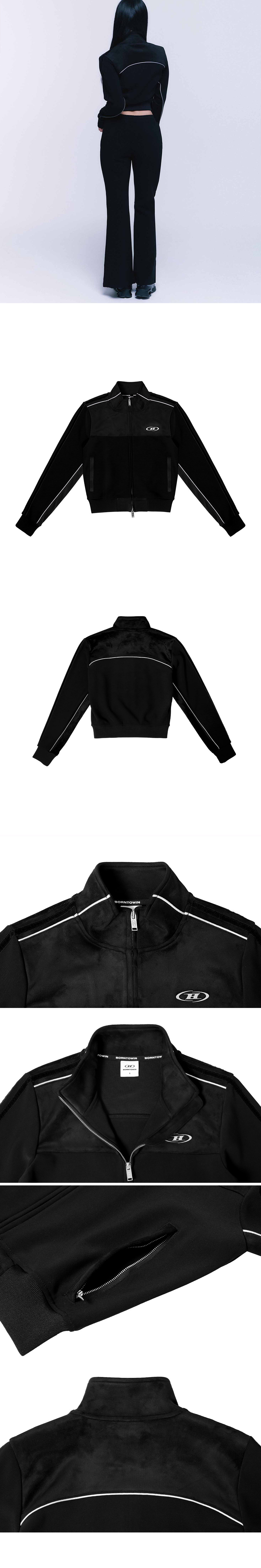 본투윈 스웨이드 실버 라인 저지 크롭 재킷 블랙