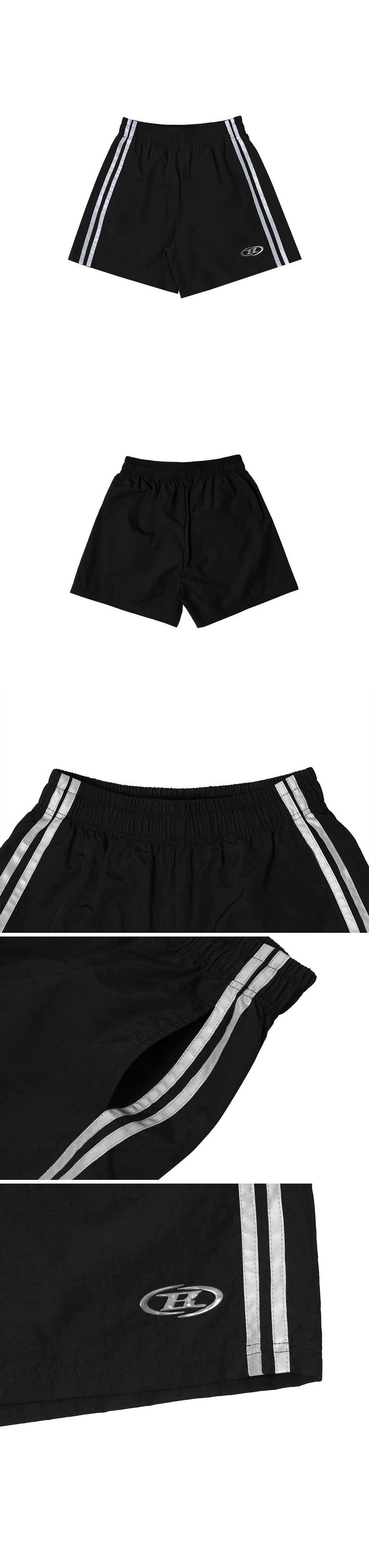 본투윈 리플렉티브 라인 나일론 쇼츠 블랙