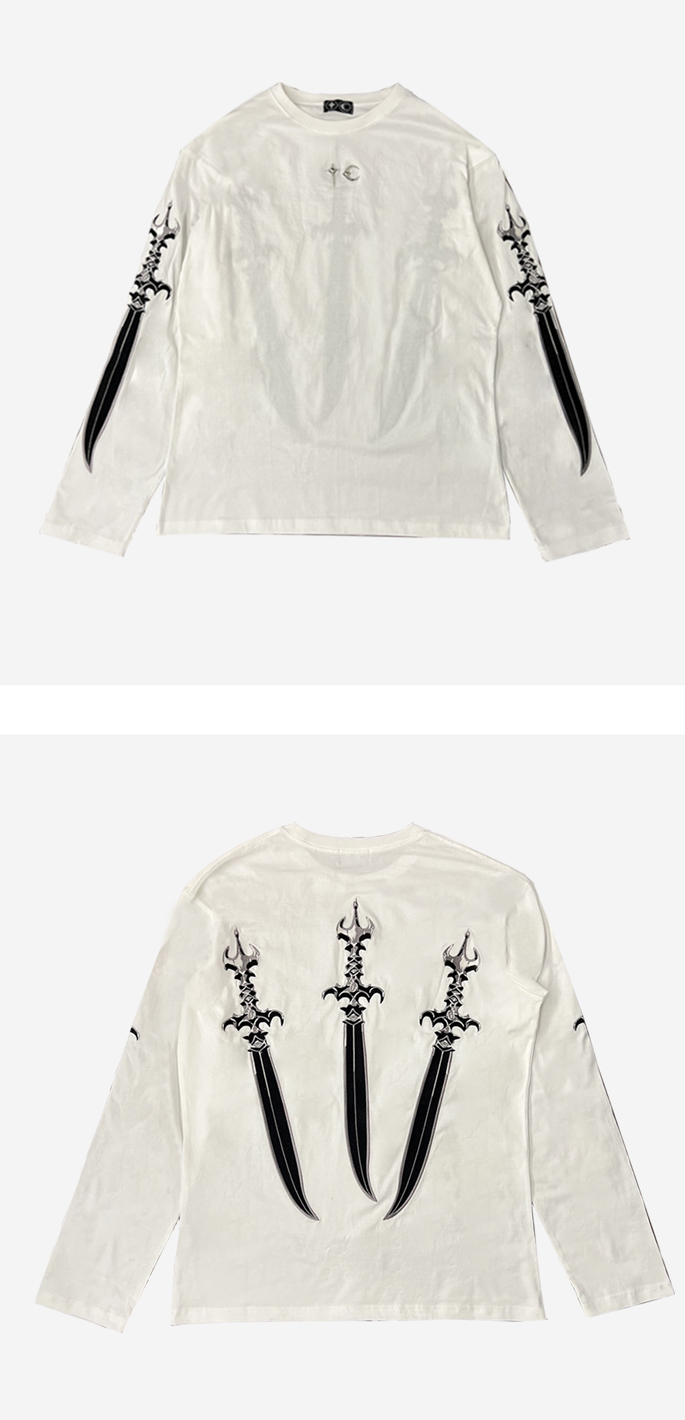 시그니처 엠블럼과 강렬한 그래픽 자수가 룩에 포인트를 주는 떠그 클럽의 롱 슬리브입니다. - 전면에 적용된 TC 엠블럼 - 후면 및 소매에 적용된 5개의 스워드 그래픽 자수 - 오버사이즈 핏 * 리벳, 엠블럼이 떨어질 위험이 있어서 건조기 사용 불가하며 손세탁을 권장합니다. * M, L, XL 사이즈는 2, 3, 4 사이즈와 동일합니다.