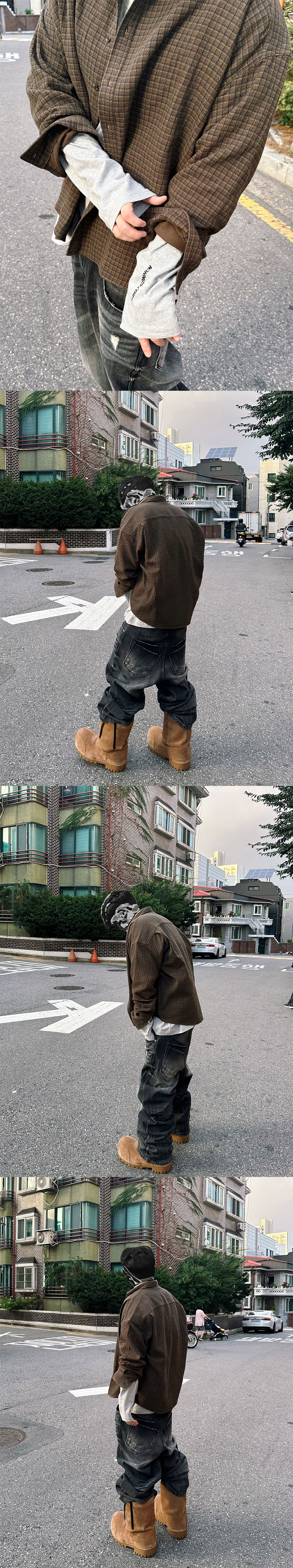 유니크한 체크 패턴에 니트 짜임 느낌으로 가공된 재패니즈 패브릭으로 제작하였습니다. 크롭한 오버핏으로 체형을 보완해 주고, 단품 및 이너로 활용도가 높습니다.
