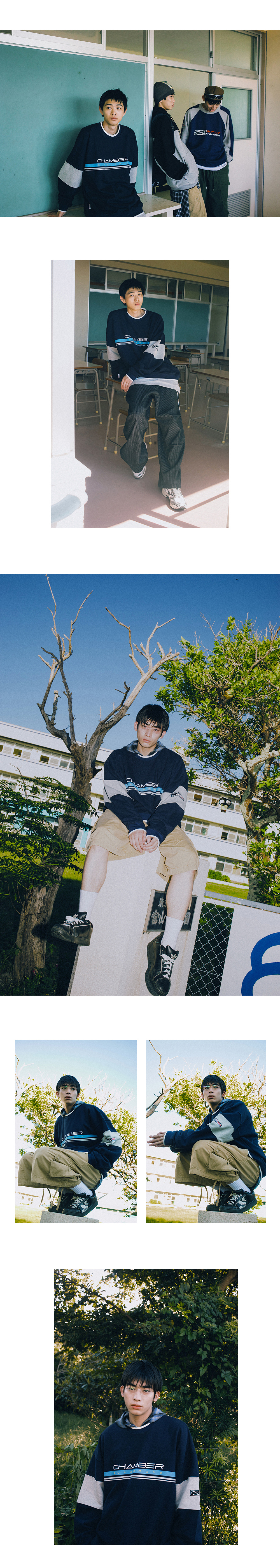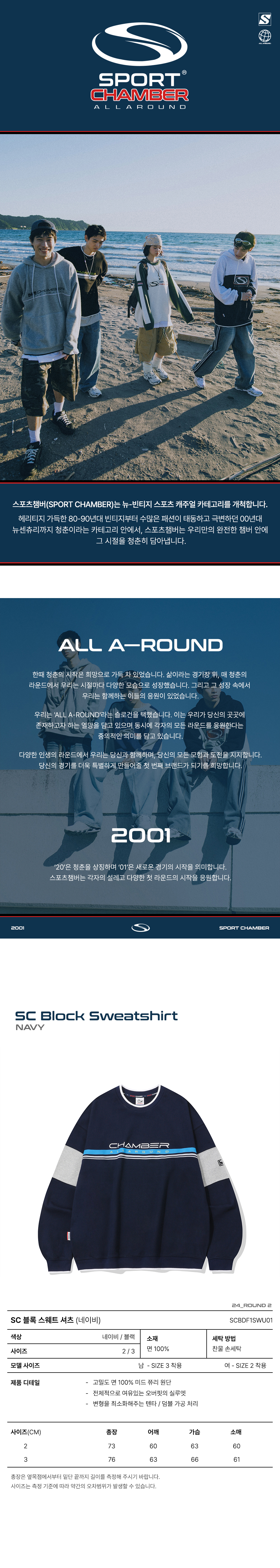 스포츠챔버 SC 블록 스웻셔츠 네이비