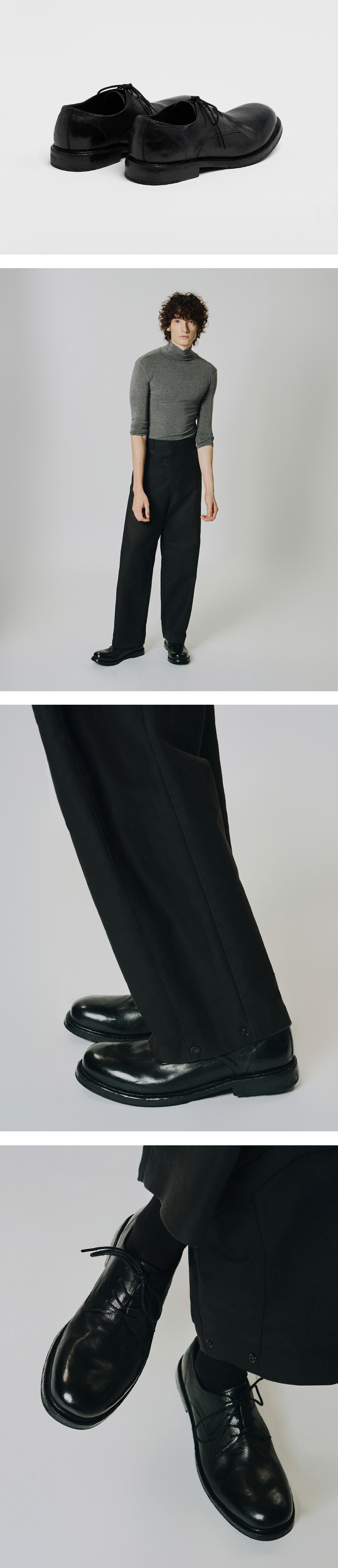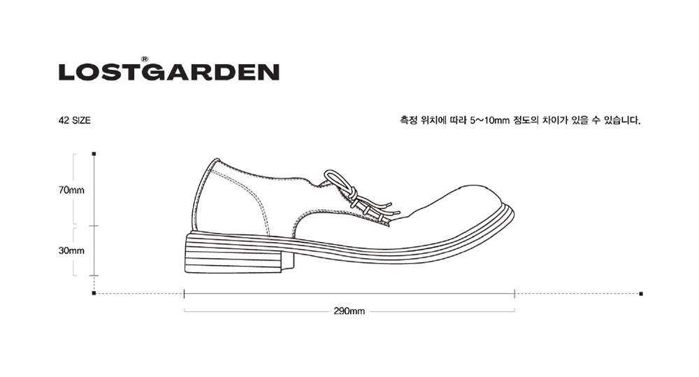 • 텀블 다이드 워싱된 더비 슈즈 • 부드러운 말가죽을 사용하여 편안한 착용감 • 자연스러운 주름과 흠집으로 빈티지한 무드 연출 • 미끄럼 방지를 위해 러버 반창을 덧댄 홍창 • 블레이크 제법으로 제작하여 견고한 내구성 상품 정보 • Upper: Horse Leather • Lining: HorseLeather • Insole: Cow Leather & Latex (0.5cm) • Outsole: Leather Sole & Rubber Half Sole (3cm) 사이즈 안내 • 평소 착용하시는 신발 정사이즈로 추천드립니다. • 여유있는 착용감을 원하시는 경우 반 치수 크게 추천드립니다.