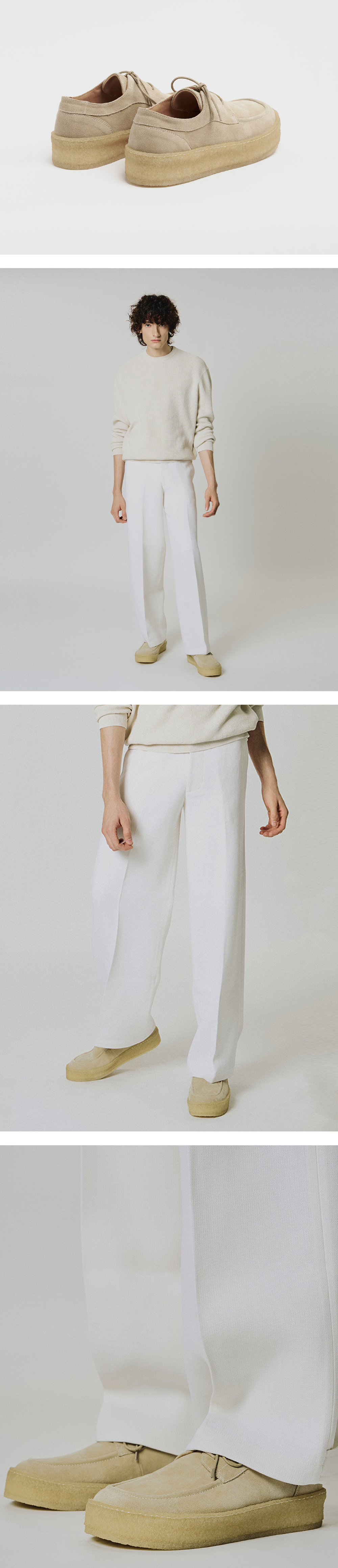 • 모카신과 유팁 더비 패턴을 결합한 더비 슈즈 • 단정함과 캐주얼함이 공존하는 디자인 • 부드러운 질감의 스웨이드 소가죽 • 내추럴한 텍스처의 크레이프 솔 • 아리안스 공법으로 제작하여 견고한 내구성 상품 정보 • Upper: Suede Cow Leather • Lining: Cow Leather • Insole: Cow Leather & Latex (0.5cm) • Outsole: Crepe Sole (3cm) 사이즈 안내 • 평소 착용하시는 신발 정사이즈로 추천드립니다. • 여유있는 착용감을 원하시는 경우 반 치수 크게 추천드립니다.