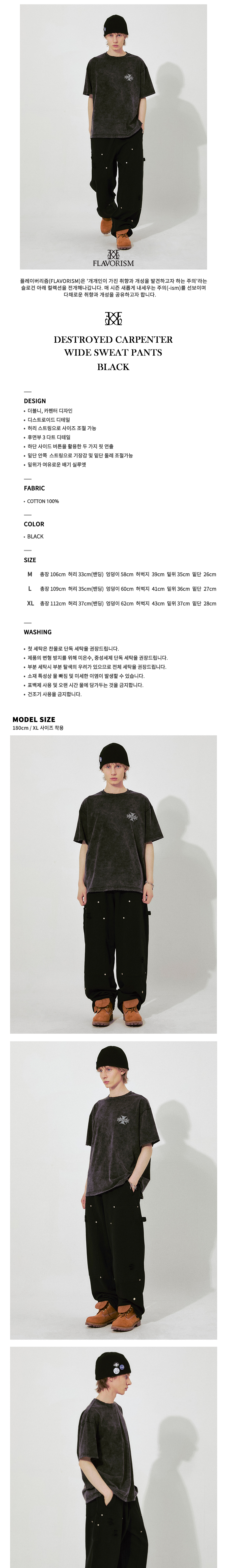 플레이버리즘 디스트로이드 카펜터 와이드 스웻 팬츠 블랙