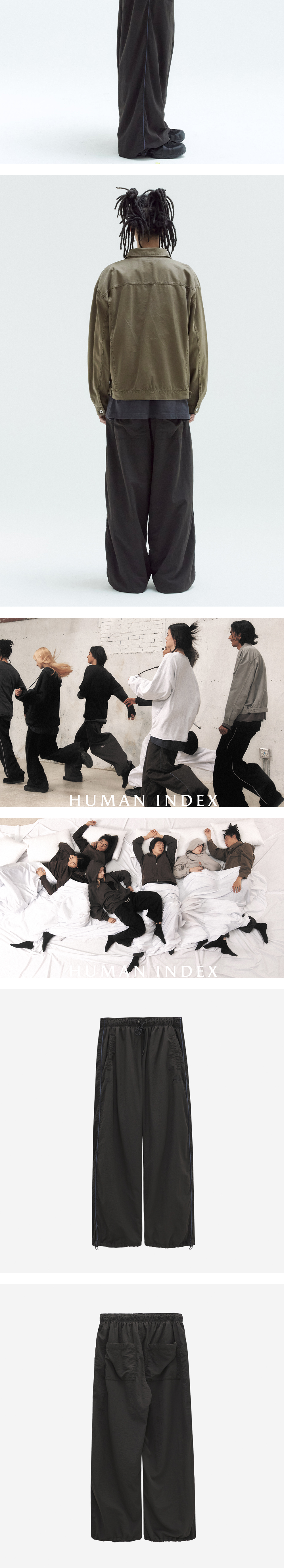index track pants * 내추럴한 질감의 워시드 나일론 트랙 팬츠 * 자연스럽게 떨어지는 루즈한 실루엣 * 밴딩 웨이스트 * 쾌적한 착용감과 안정 된 실루엣을 유지해주는 메시 안감 * 사이드의 배색 파이프드 라인 * 조절 가능한 허리와 밑단의 엘라스틱 스트링