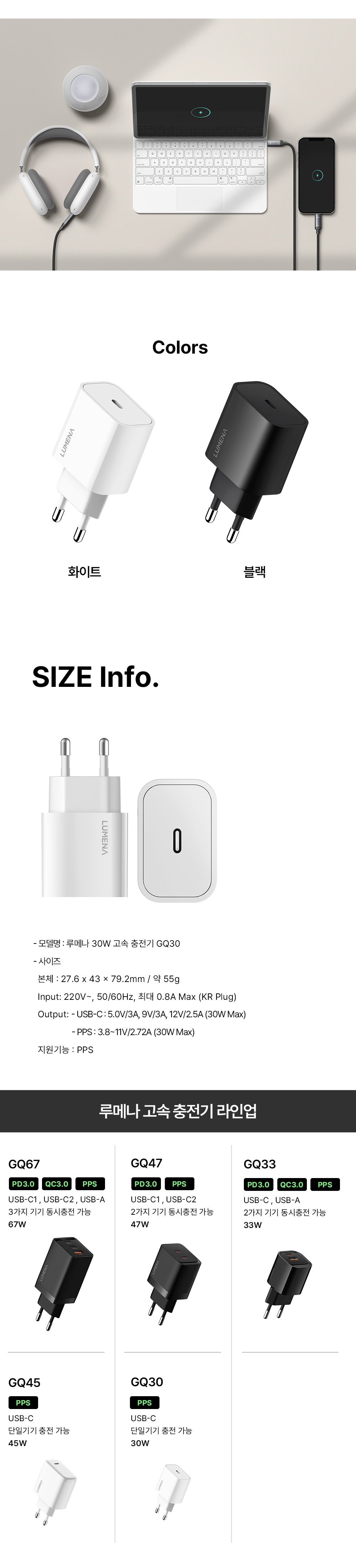 루메나 30W Gan 초고속 충전기 GQ30 블랙