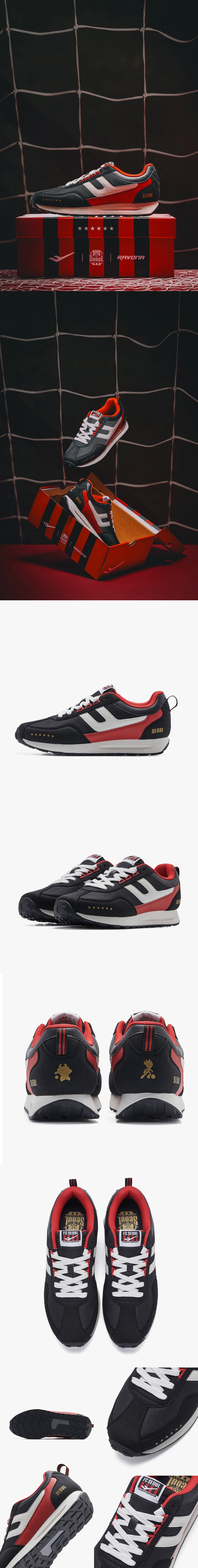 서울 ORIGINAL-HERITAGE-GENERATION으로 이어지는 FC서울 감성의 스니커즈 FC서울을 가장 잘 아는 라보나크리에이티브의 첫번째 신발 디자인 좌우 양 뒷꿈치에 각각 새겨진 실루엣은 구단의 역대 마스코트인 황소와 씨드로써 FC서울의 과거와 현재를 잇는 상징적인 의미를 내포함. 제품의 상단에 달려있는 고무 와펜은 키링 또는 가방 고리로도 활용이 가능함