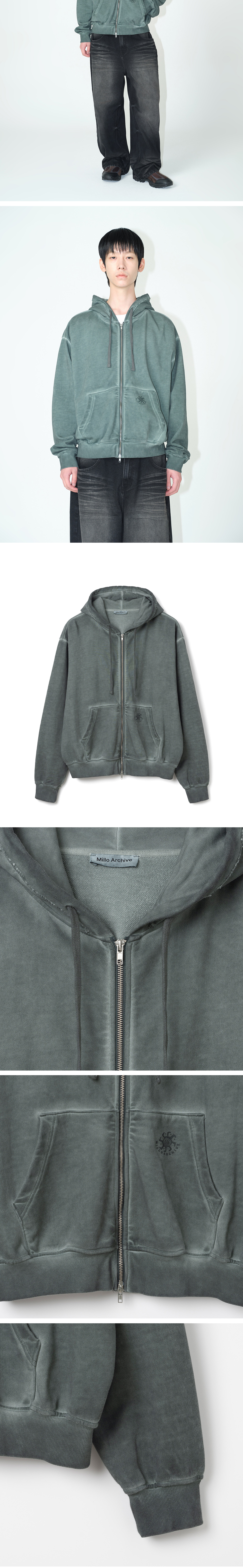 밀로 아카이브 스프레드 이지 워시드 후드 집업 페이드 그린