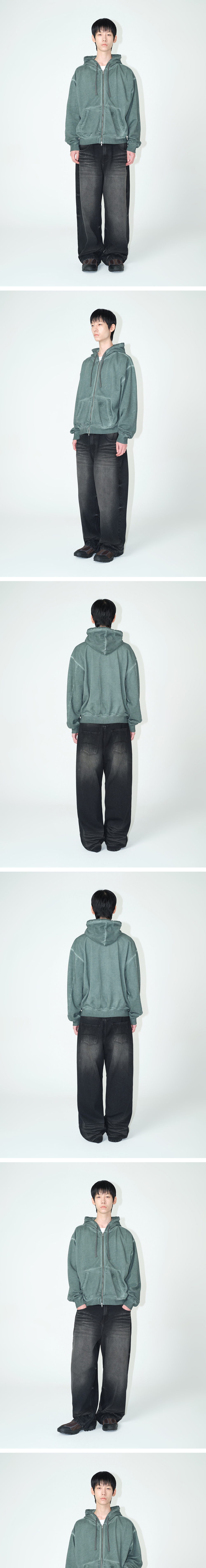 Millo Archive Spread Easy Washed Hood Zip Up Fade Green