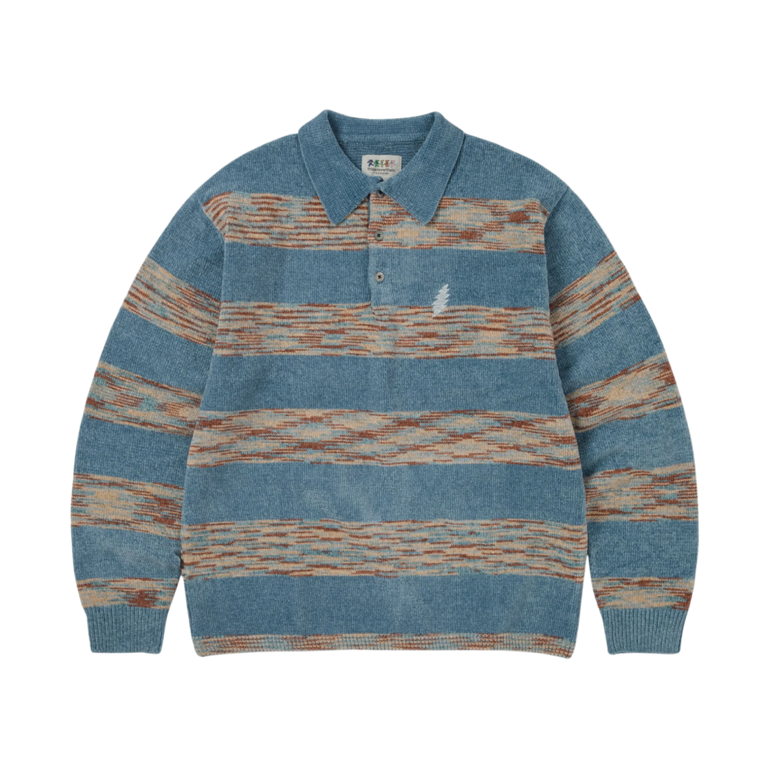 디스이즈네버댓 x 그레이트풀 데드 라이트닝 벨벳 니트 폴로 블루
