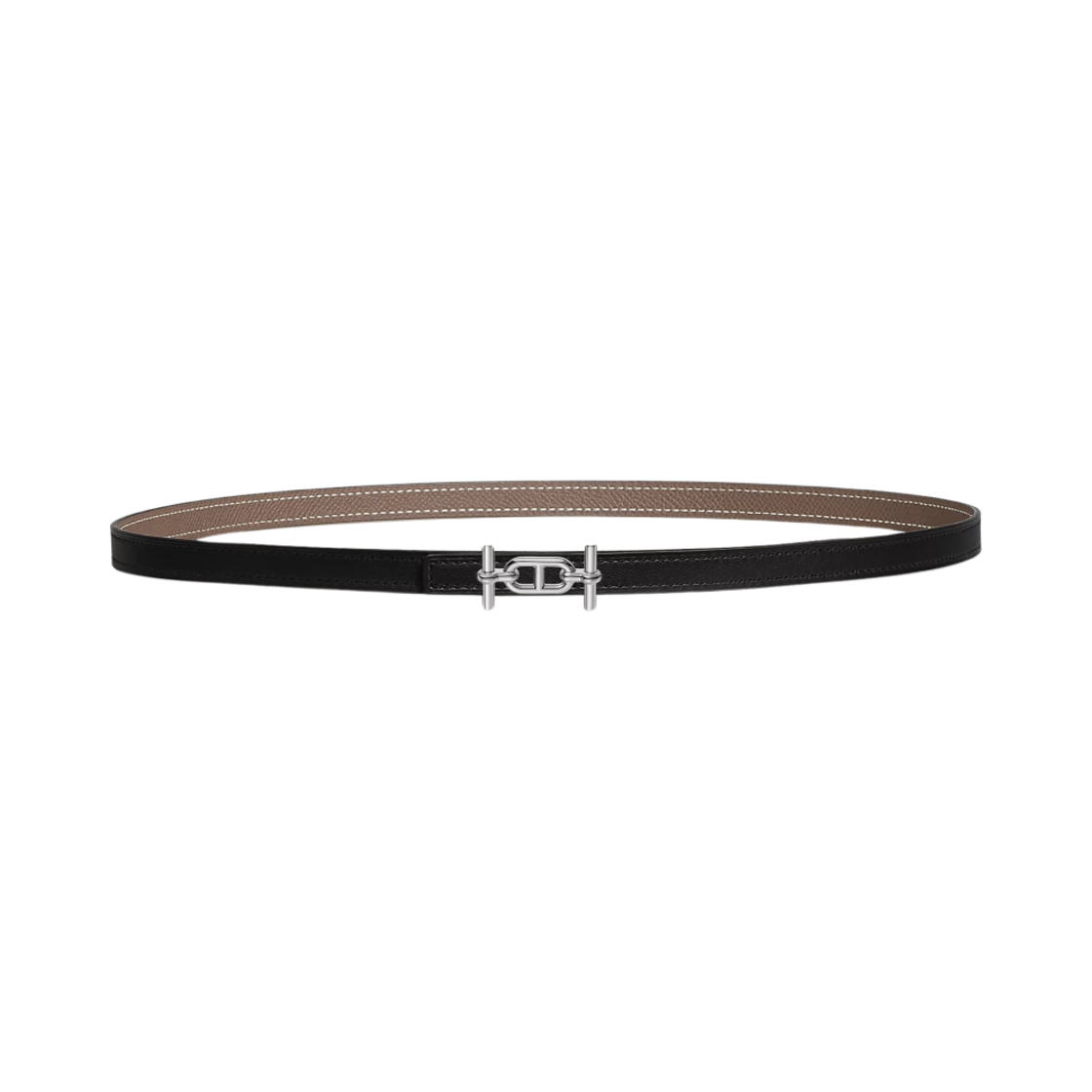 (W) Hermes Ancre Belt Buckle & Reversible Leather Strap 13mm & Palladium Noir Etoupe