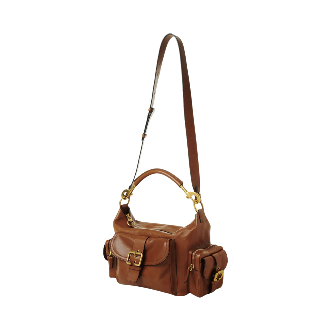 끌로에 샤이니 레더 카메라 백 클레이 브라운