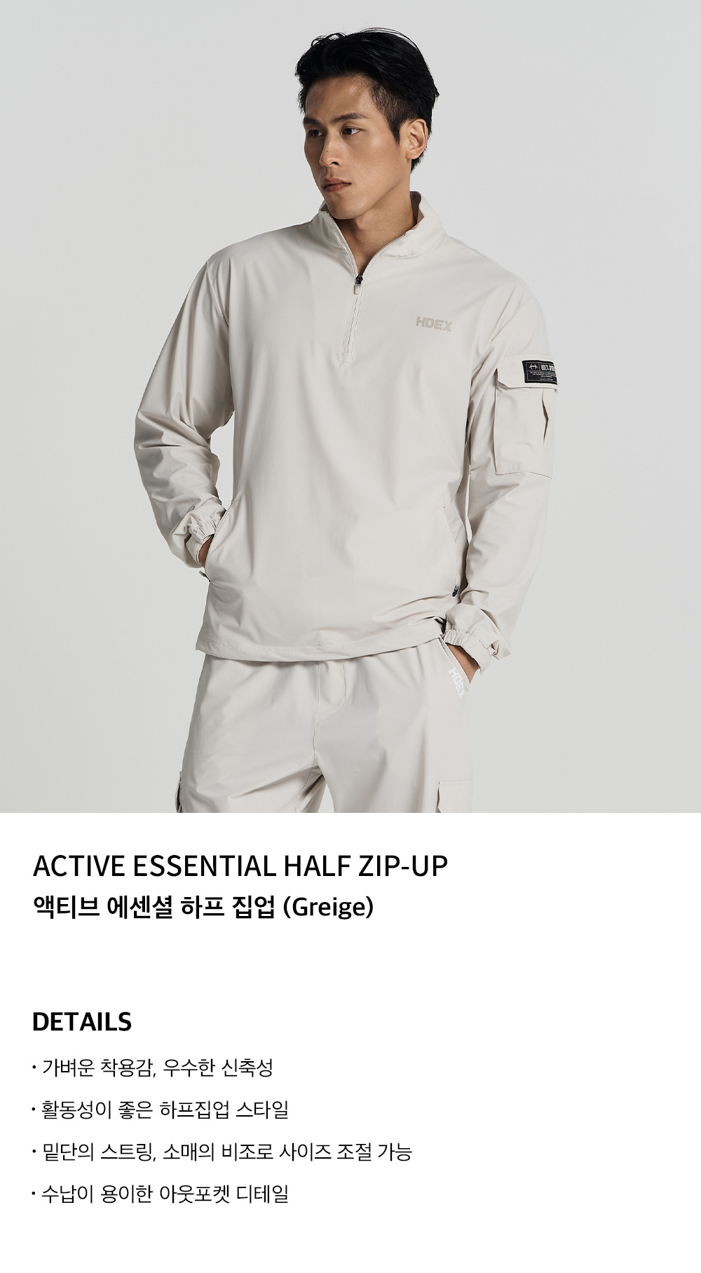 에이치덱스 액티브 에센셜 하프 집업 그레이지