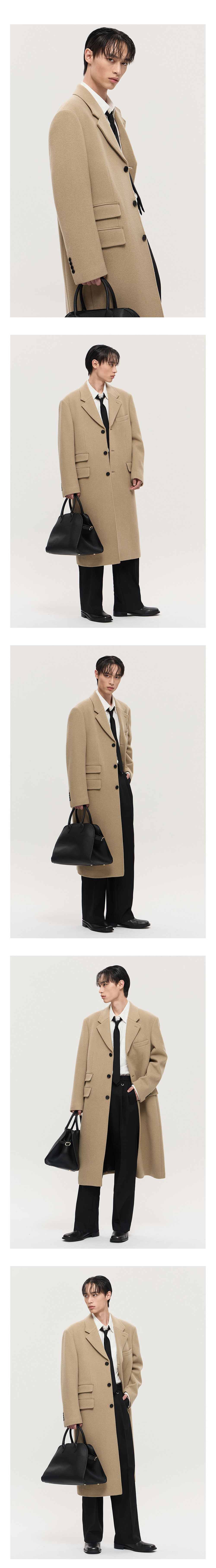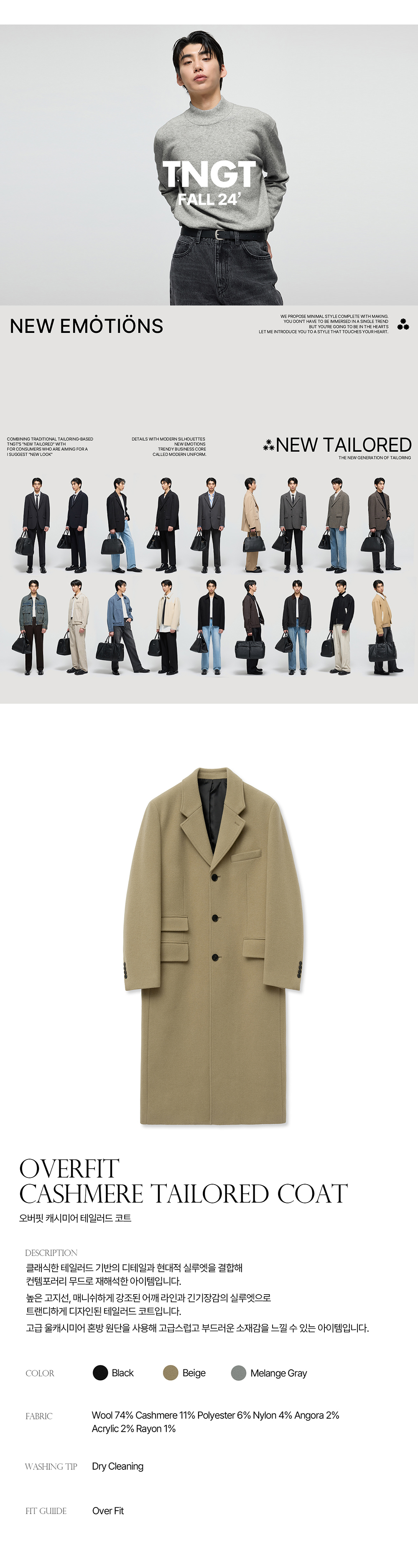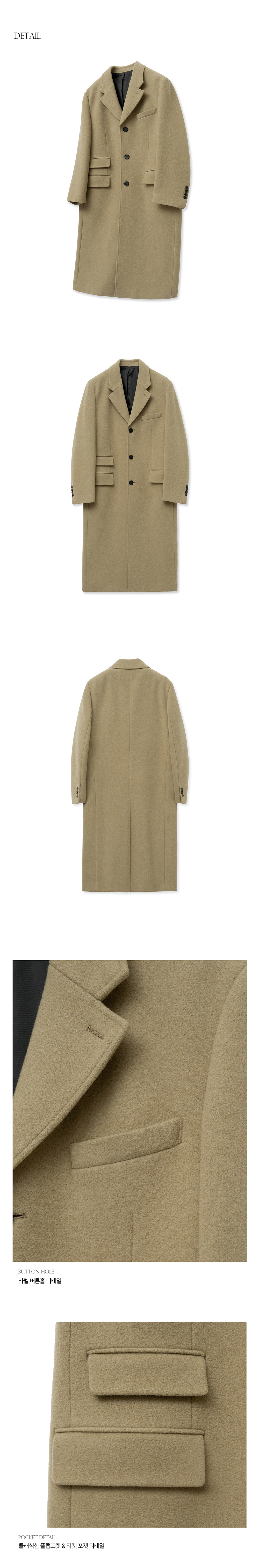 티엔지티 베이지 오버핏 캐시미어 3버튼 테일러드 코트
