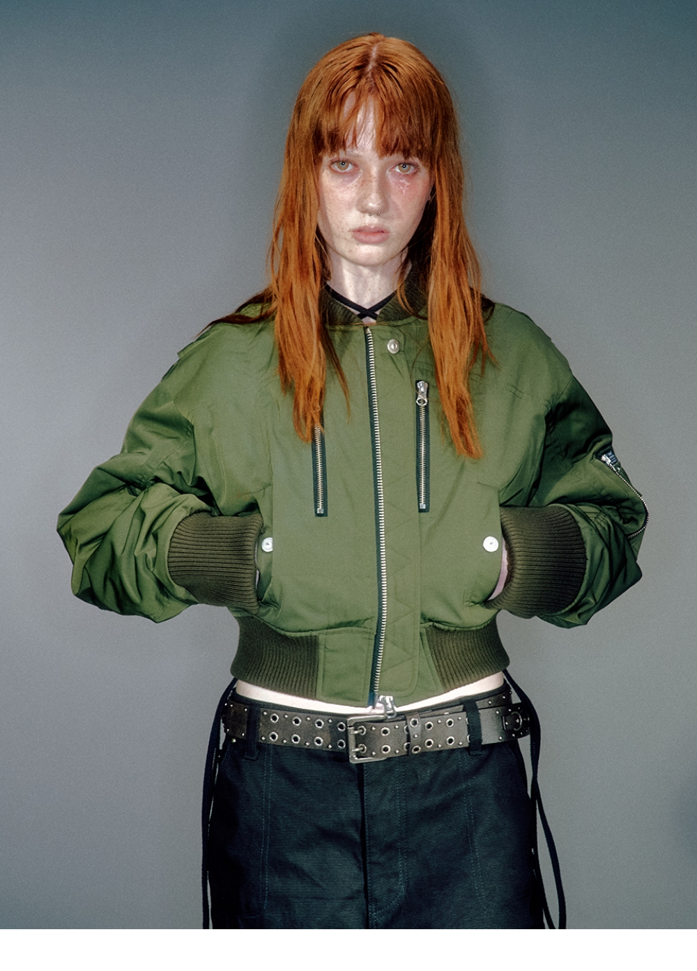 베이컨트 아카이브 우먼 멜리 패디드 봄버 카키