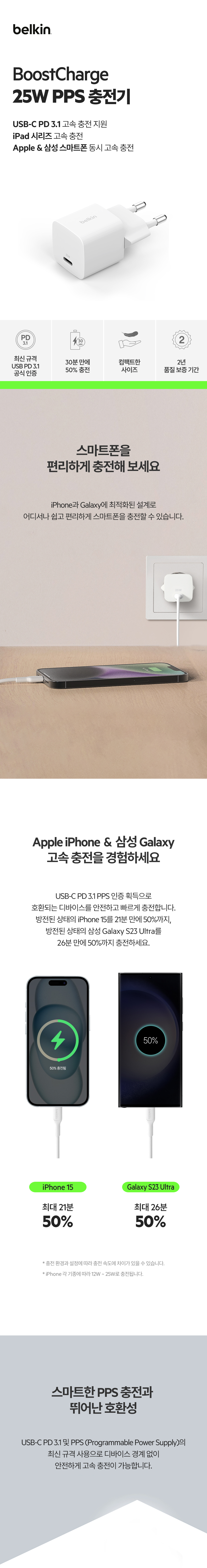 벨킨 25W PD 3.1 PPS C 타입 초소형 고속 충전기 WCA012