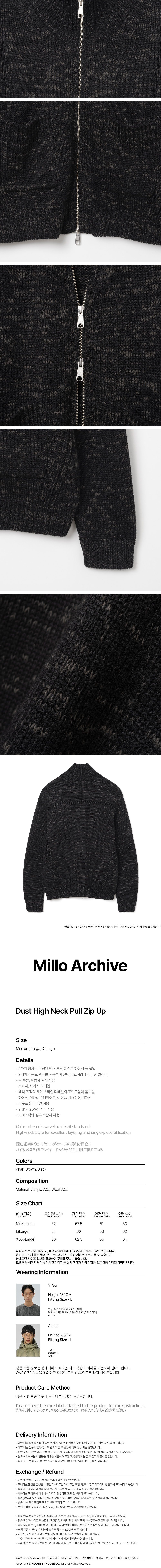 - 2가지 원사로 구성된 믹스 조직 더스트 하이넥 풀 집업