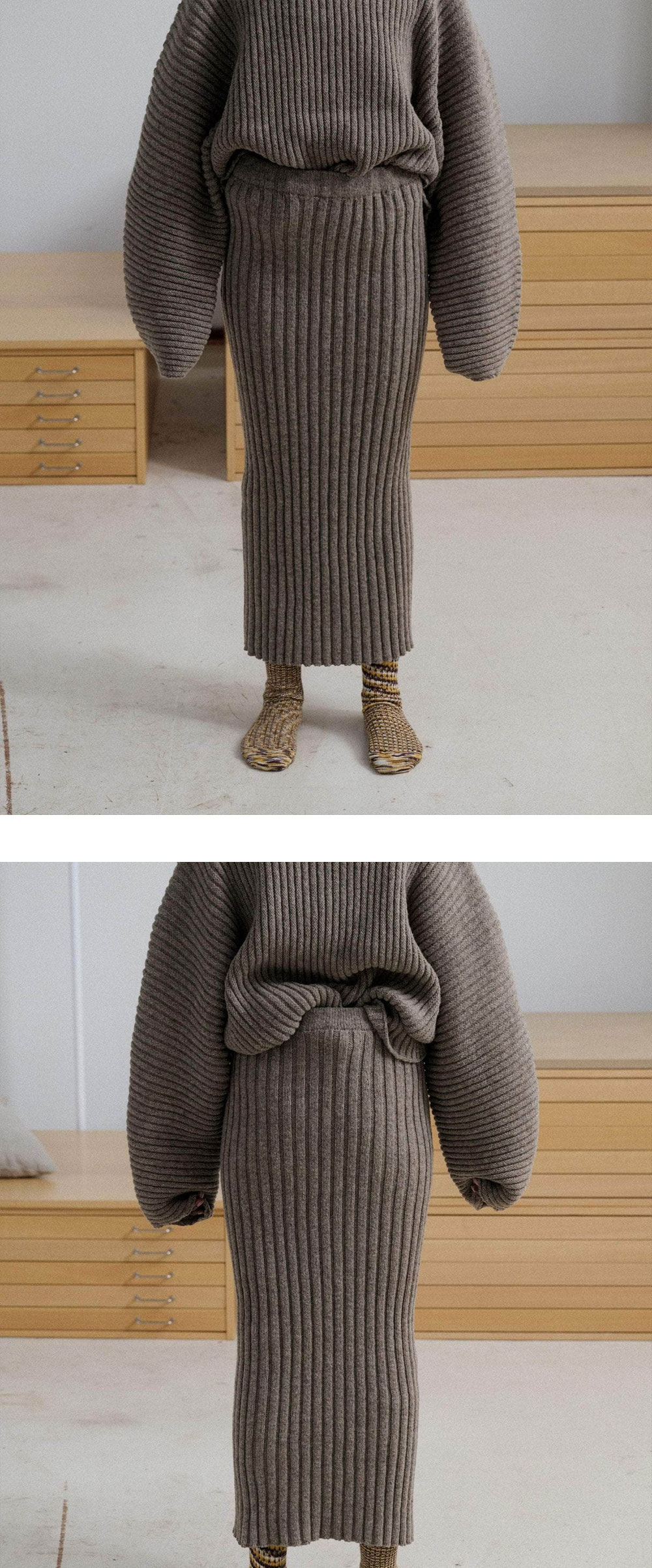 고급스러운 울 소재로 신축성 있는 소재로 활동하기 편한 베이스레인지의 카이 롱 스커트입니다. - 탄력있는 허리 밴드 - 100% Arles Merino Wool * 모델 S size 착용