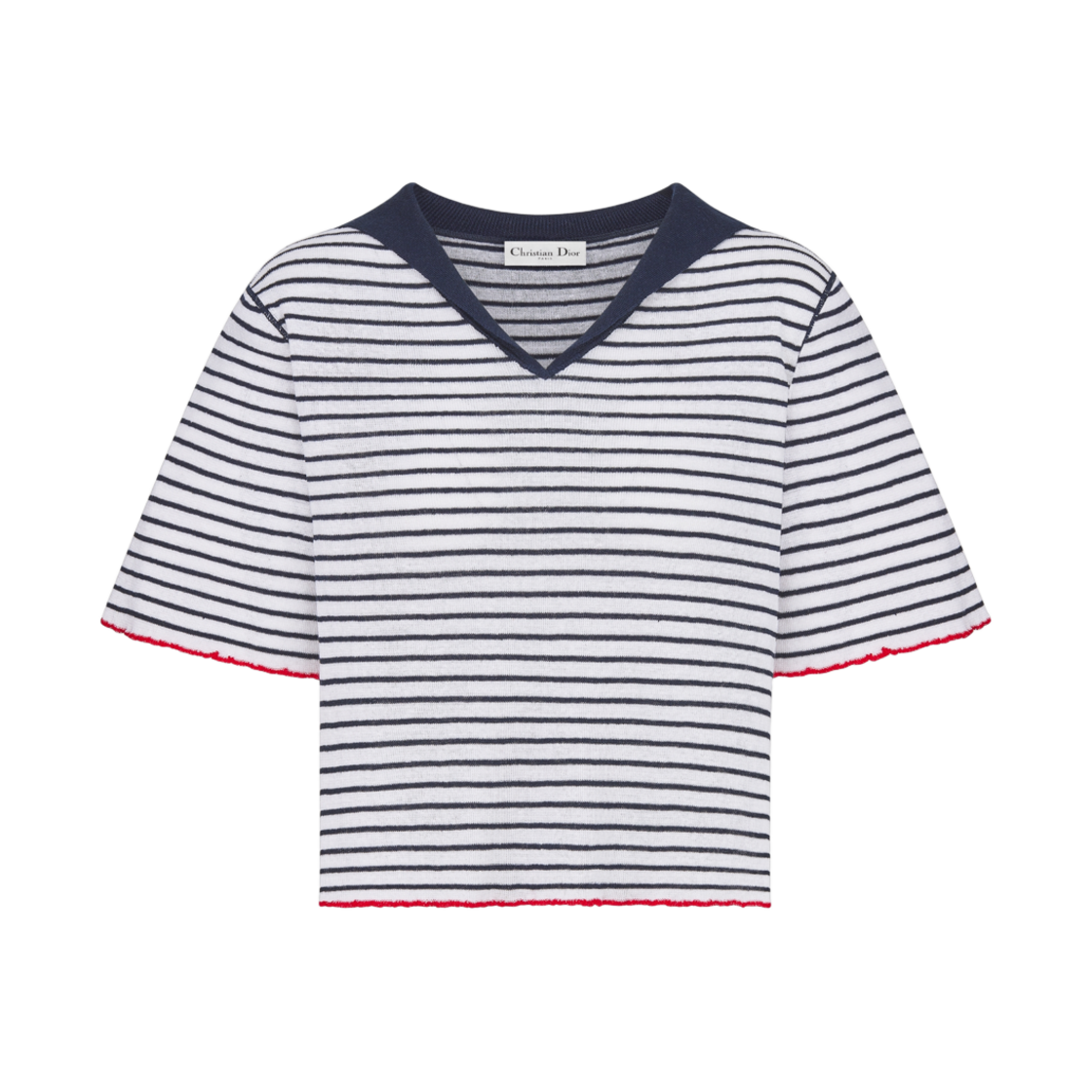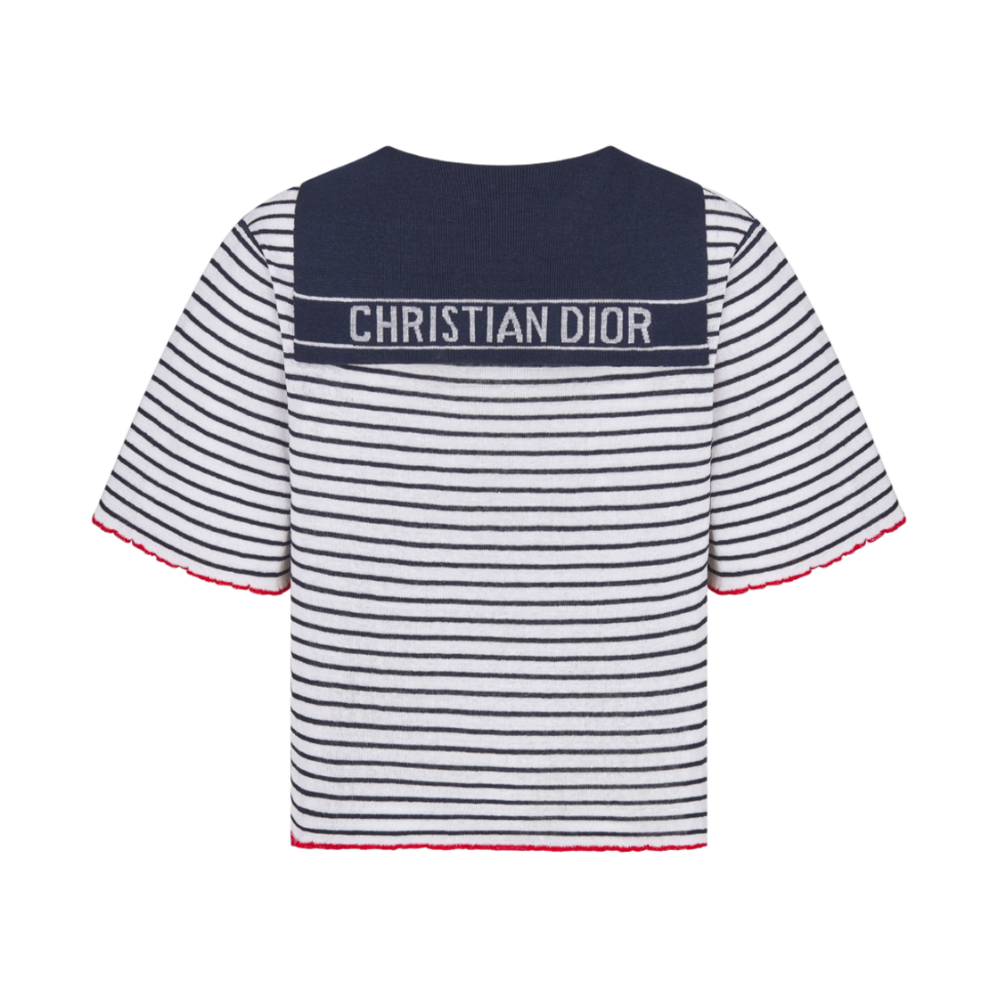 (W) Dior Linen Cashmere and Silk Ribbed Knit with Dior Mariniere Motif Dioriviera Sweater White Navy