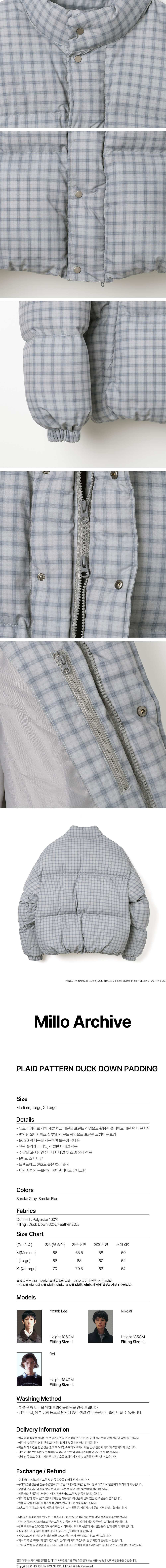 밀로 아카이브 플레이드 패턴 덕 다운 패딩 스모크 블루