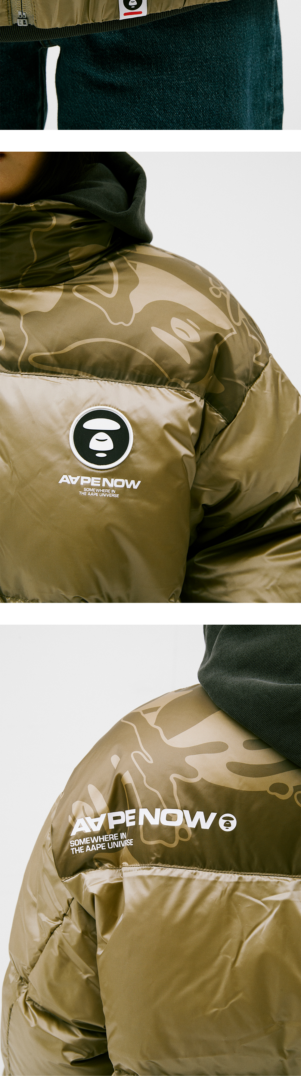 깔끔한 디자인에 카모 패턴이 더해진 에이프의 다운 자켓입니다. - 최상단 패널에 적용된 에이프 카모 패턴 - 전면 로고 패치 - 전/후면 로고 프린팅 - 소매 및 밑단 밴딩 처리 - 가벼운 무게감 - Duck Down 85%, Feather 15%