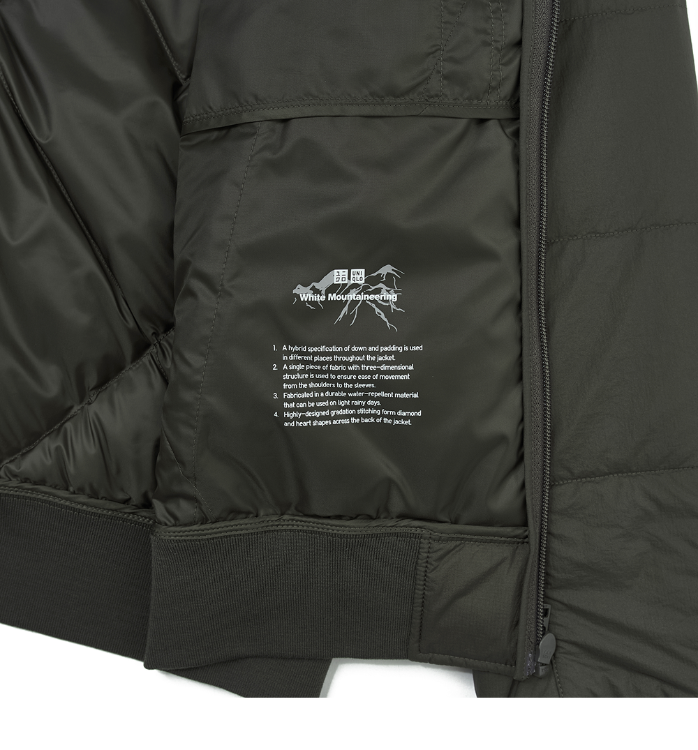 유니클로 x 화이트 마운티니어링 리사이클드 하이브리드 다운 자켓 올리브 - KR