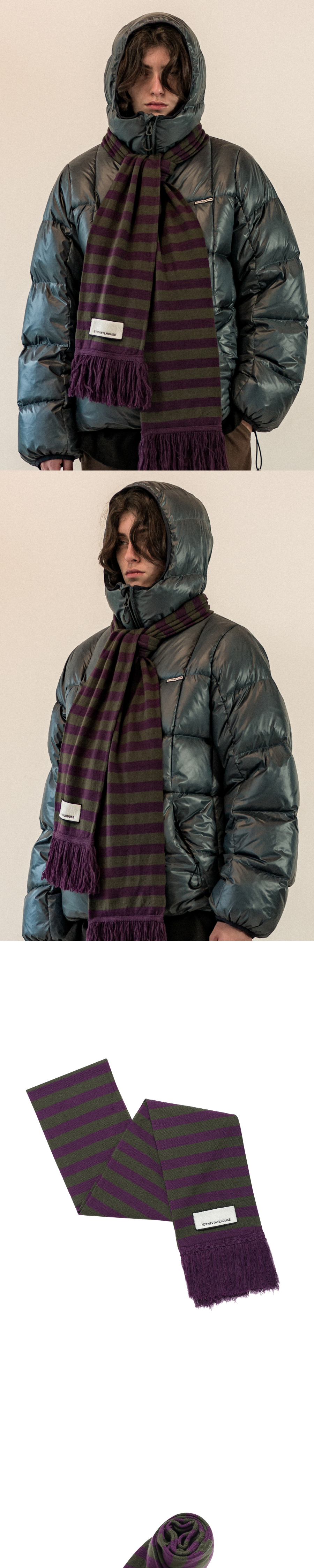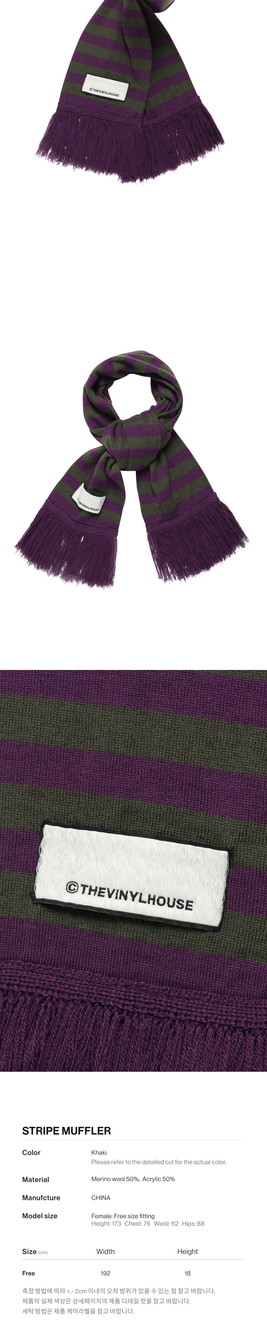 더바이닐하우스 스트라이프 머플러 카키