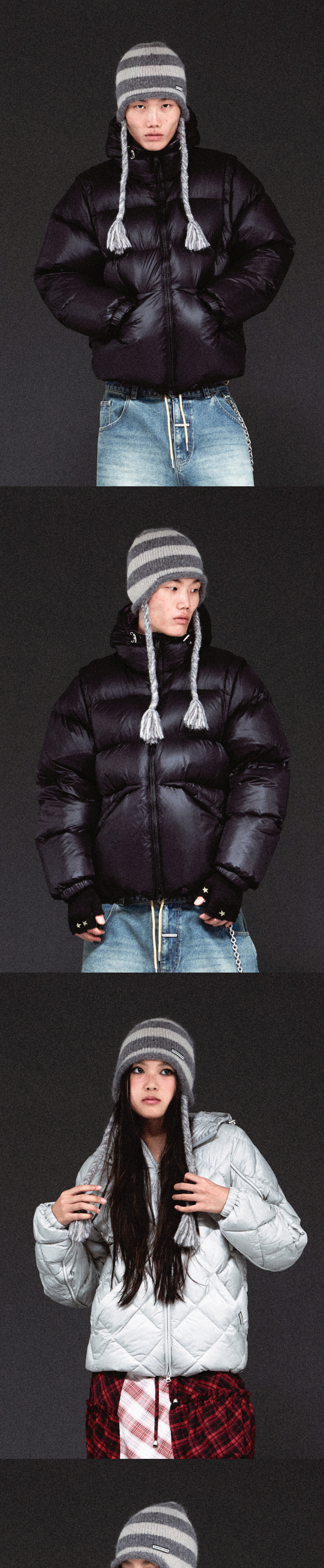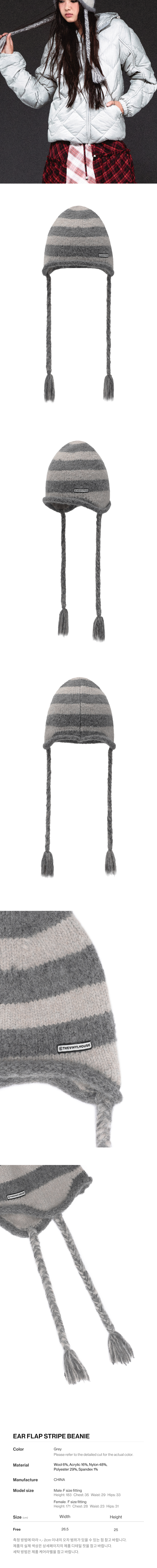더바이닐하우스 이어 플랩 스트라이프 비니 그레이