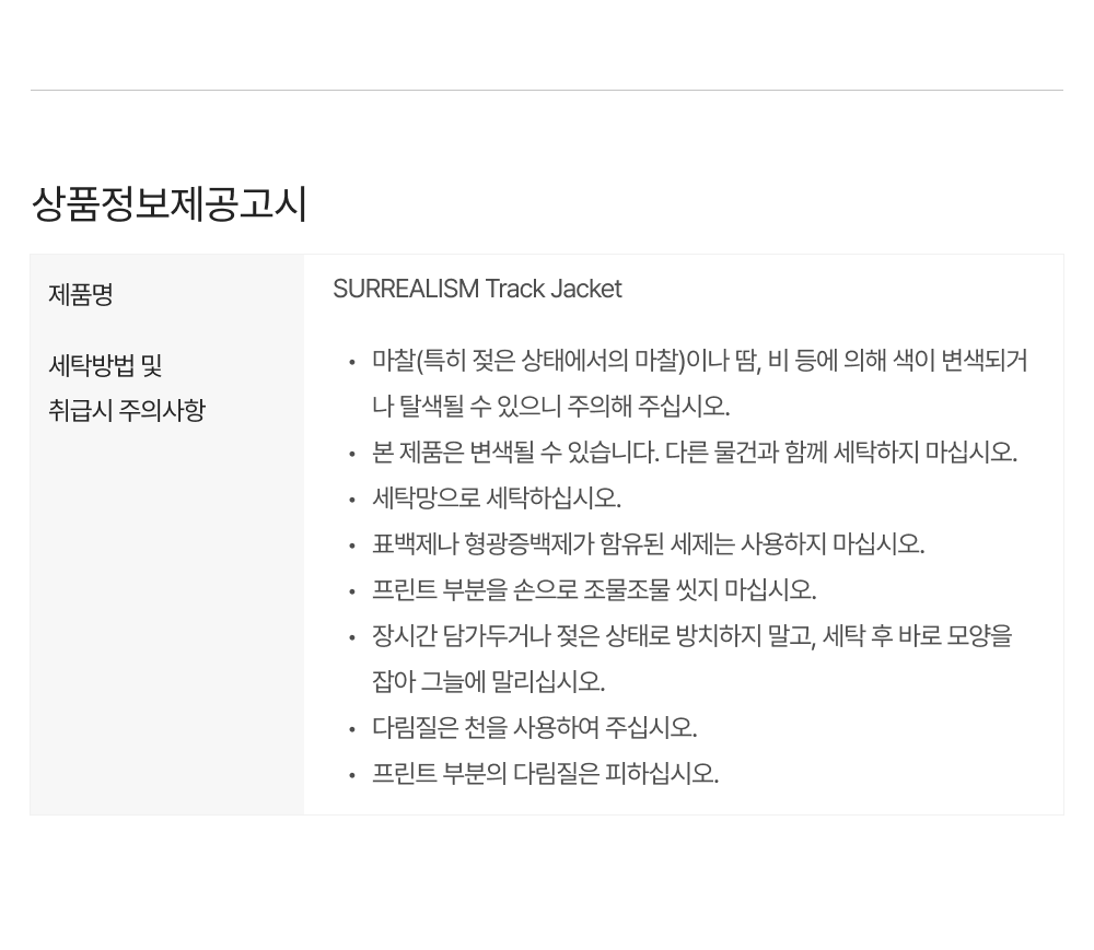 상품정보제공 고시
