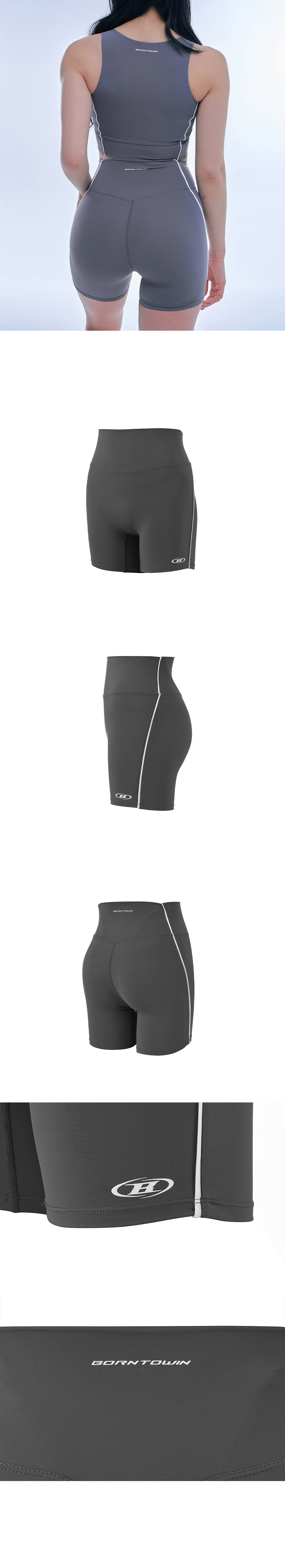 본투윈 심볼 B 파이핑 3.5 바이커 쇼츠 차콜