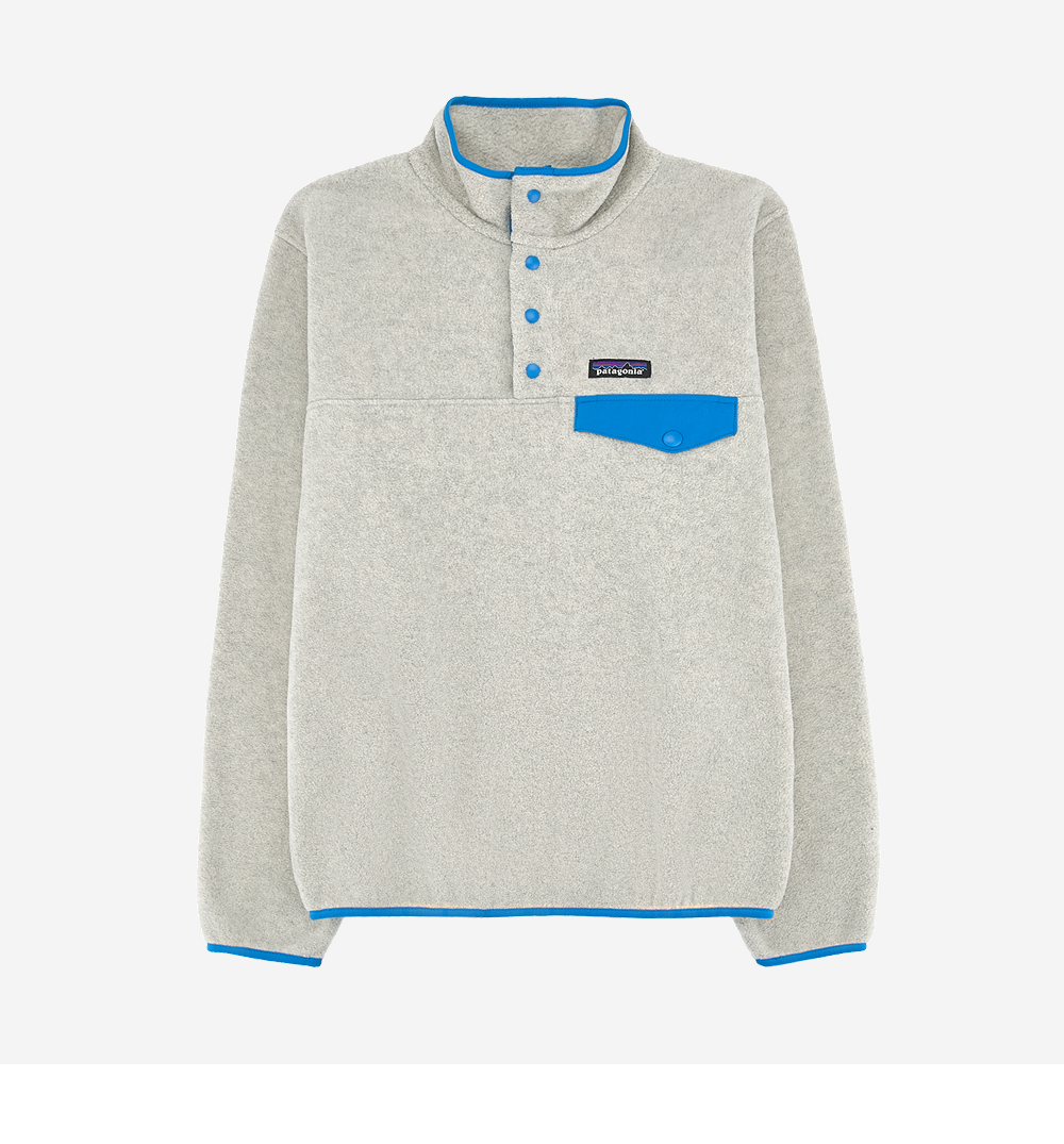 (W) 파타고니아 라이트웨이트 신칠라 스냅-T 플리스 풀오버 오트밀 헤더 베셀 블루